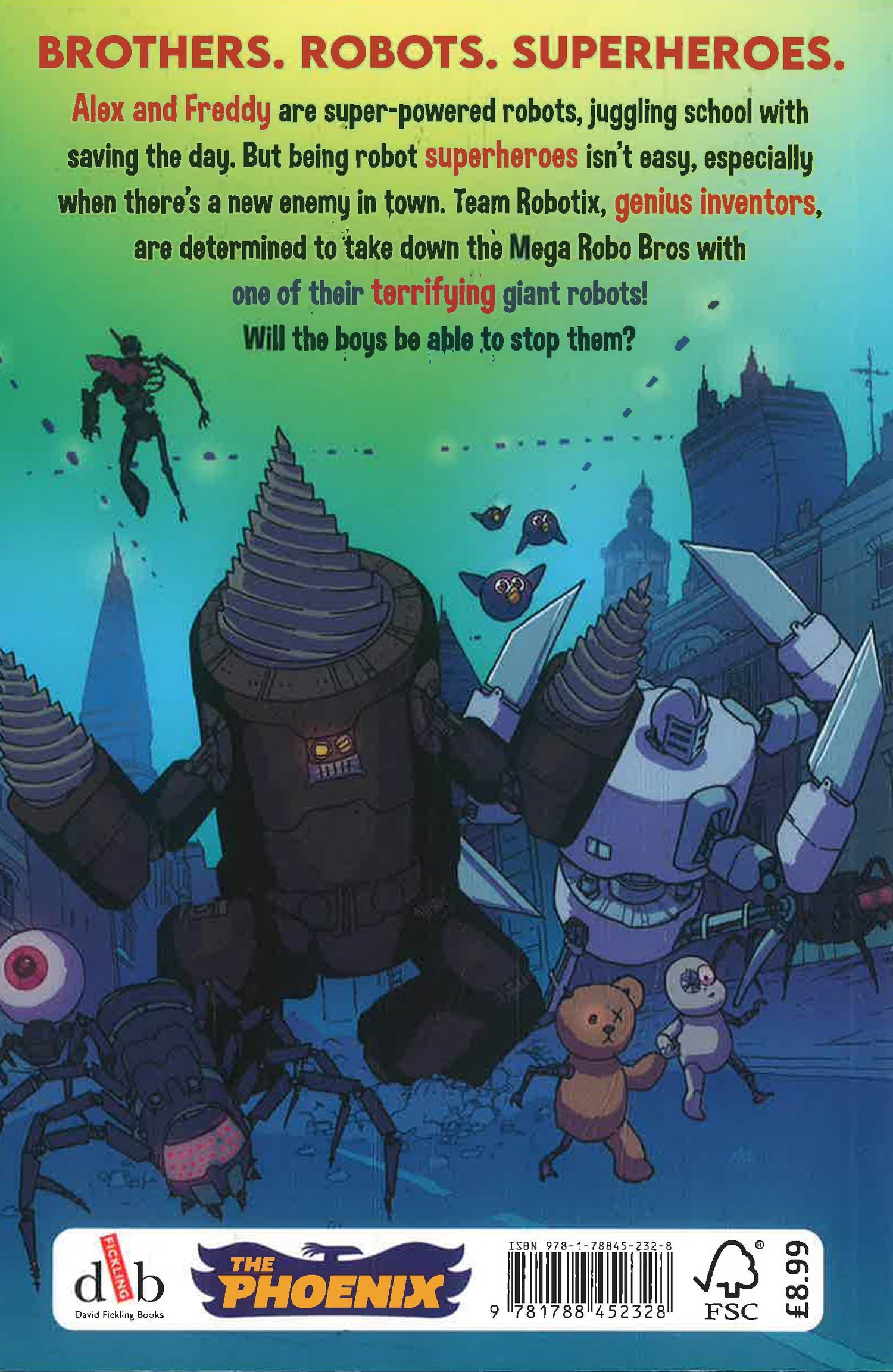 This awesome book republishes MEGA ROBO RUMBLE, fully remastered and adapted into a new chunky format, with lots of extra bonus content! BROTHERS. ROBOTS. SUPERHEROES. ALEX AND FREDDY are super-powered robots, juggling school with saving the day. But being robot SUPERHEROES isn't easy, especially when there's a new enemy in town. Team Robotix, GENIUS INVENTORS, are determined to take down the Mega Robo Bros with one of their TERRIFYING giant robots! Will the boys be able to stop them?