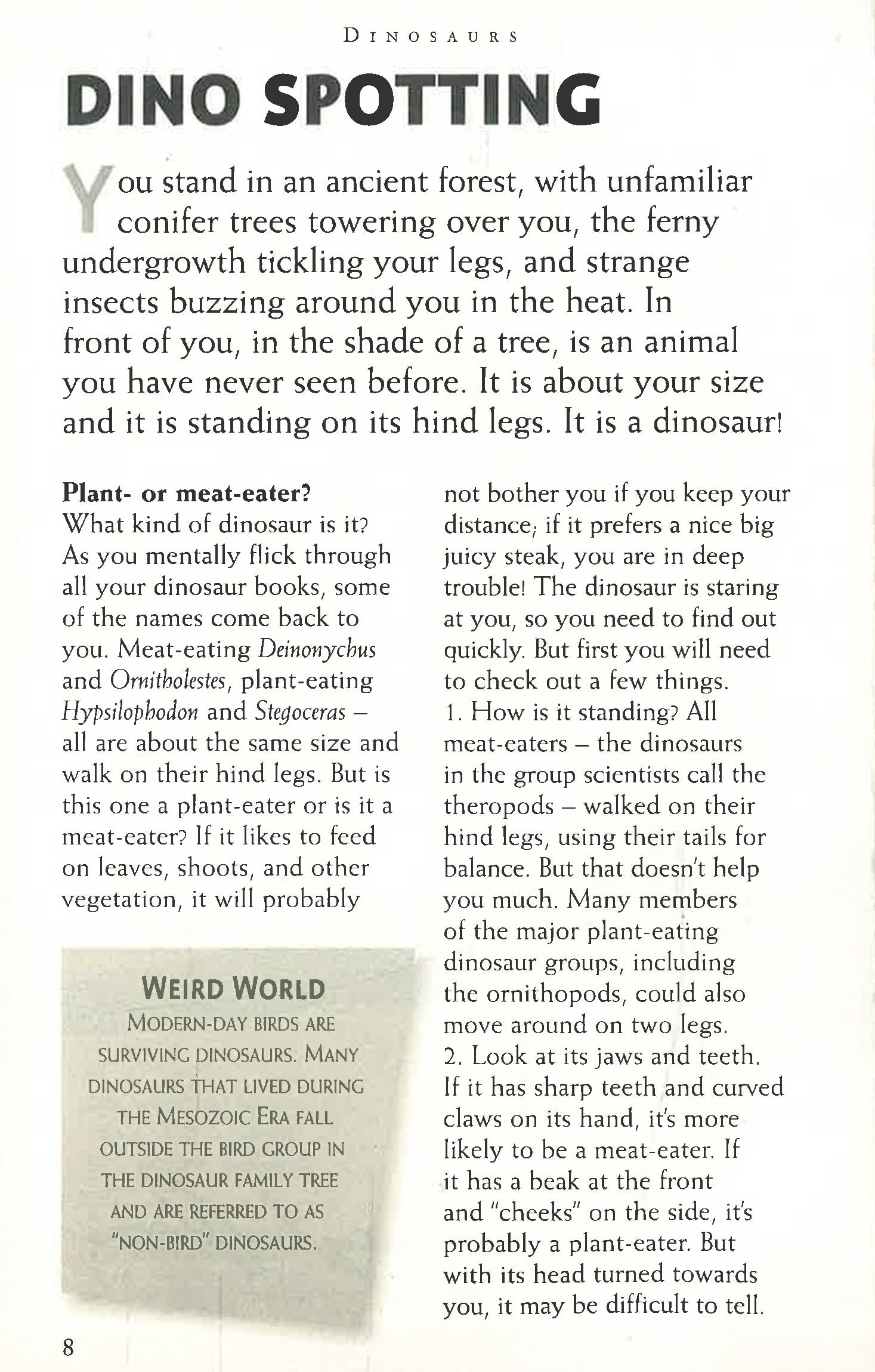 Do you know why there were more days in the year in dinosaur times? How many hours it can take to excavate a dinosaur fossil? Step back in time and find out all the facts in this awe inspiring black-and-white chapter book about the prehistoric world and the amazing creatures that once roamed Earth. You'll come face-to-face with spectacular reptiles that dominated the skies and seas while dinosaurs ruled on land - from towering forest browsers like Diplodocus and Barosaurus to the deadly Tyrannosaurus and Allosaurus with their bone-crushing jaws.