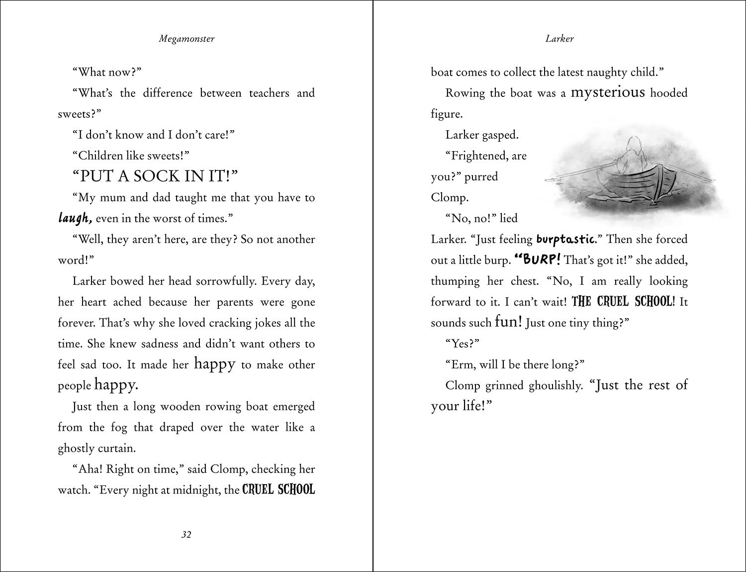 The hilarious children's book from No. 1 bestselling author David Walliams - a timeless adventure illustrated by artistic genius, Tony Ross. On a volcanic island, in the middle of shark-infested waters, stands The Cruel School. The lessons are appalling, the school dinners are revolting and the teachers are terrifying - especially the mysterious Science teacher Doctor Doktur. When Larker is sent to the school, she quickly realises something very odd is going on... something involving Doctor Doktur, a pair of strange spectacles, and a 'Monsterfication Machine'. And ultimately, she finds herself face to face with a real life Megamonster. There seems to be no escape - but for Larker, nothing is impossible...