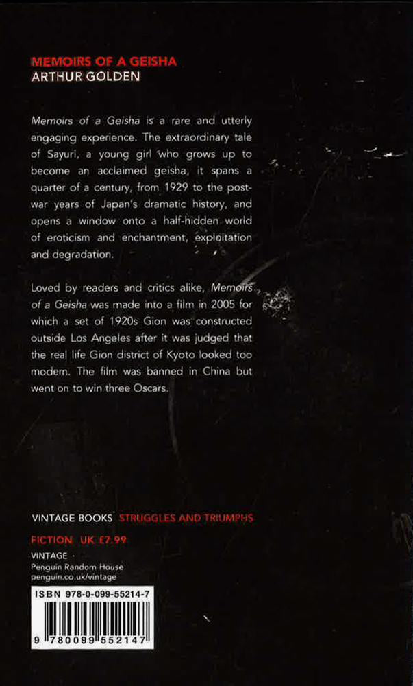 An epic tale and a brutal evocation of a disappearing world' The Times A young peasant girl is sold as servant and apprentice to a renowned geisha house. Many years later she tells her story from a hotel in New York, opening a window into an extraordinary half-hidden world of eroticism and enchantment, exploitation and degradation and summoning up a quarter of a century of Japan's dramatic history. 'Intimate and brutal, written in cool, lucid prose it is a novel whose psychological empathy and historical truths are outstanding' Mail on Sunday