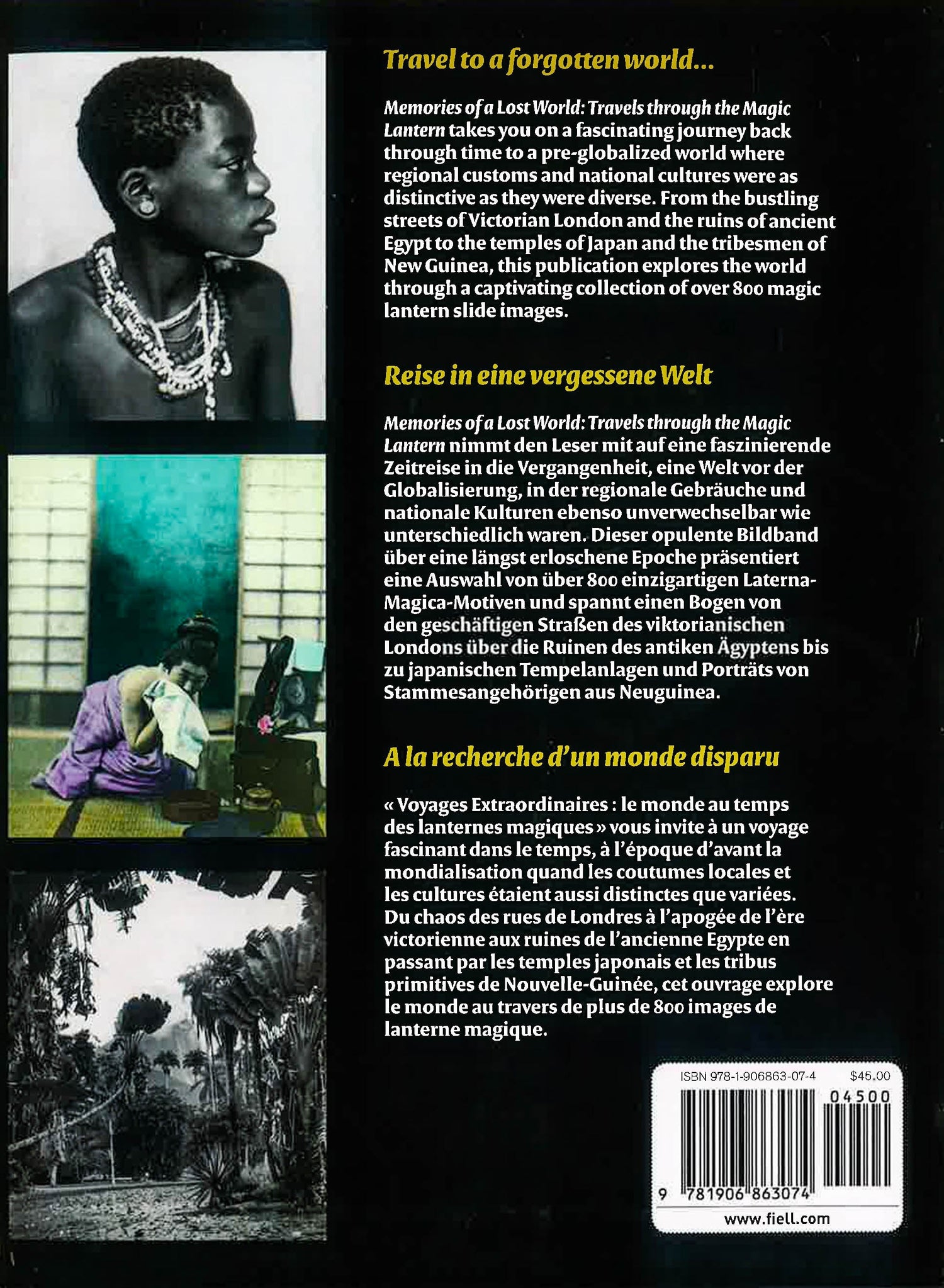 "Memories: A World Tour" takes you on a fascinating journey back through time to a pre-globalised world where regional customs and national cultures were as distinctive as they were diverse. From the bustling streets of Victorian London and the ruins of ancient Egypt to the temples of Japan and the tribesmen of New Guinea, this publication explores the world through a captivating collection of over 800 magic lantern slide images. From the 1870s to the 1930s, photographic magic lantern slide shows were a popular, entertaining and educative way for people to learn about the world beyond their own shores. From Cairo and Delhi to Adelaide and Cape Town, intrepid photographers travelled to all corners of the world to document its peoples and customs. For the first time these images have been brought together in a single publication and the result is a beautiful yet poignant echo of a lost world that at the same time conveys a powerful sense of shared humanity. "Memories: A World Tour" is an important primary source of historical information, which precisely and beautifully documents what the world was like before the advent of television and mass-travel.