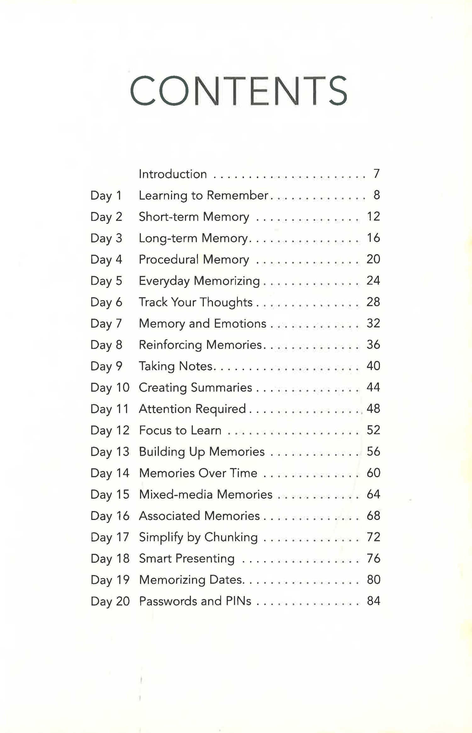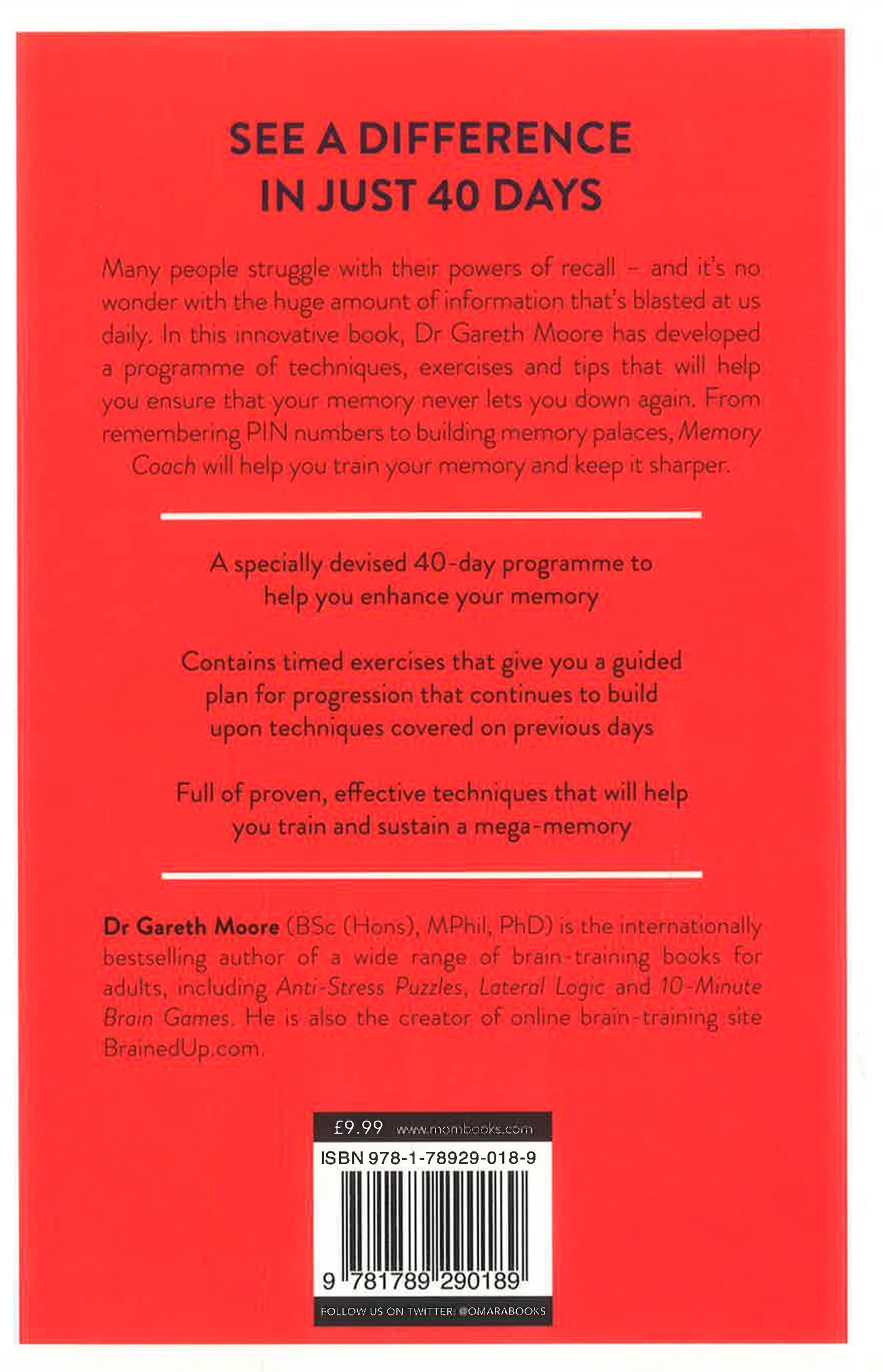 From remembering PIN numbers to public speaking, and from acronyms to memory palaces, The Memory Coach will help you to train your memory and keep it sharper, more focused, bigger and better – all in 40 days.