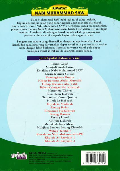 Nabi Muhammad SAW nabi lagi rasul yang terakhir. Baginda penunjuk jalan yang benar kepada umat manusia di seluruh dunia. Siri Riwayat Nabi Muhammad SAW diterbitkan untuk menambahkan pengetahuan tentang Nabi Muhammad SAW. Kisah-kisah dalam siri ini dapat memberi kesedaran di kalangan kanak-kanak sekali gus menyemai perasaan cinta mereka kepada baginda dan agama Islam. Penggunaan bahasa yang disesuaikan dengan tahap kebolehan kanak kanak dan suku kata yang diwarnakan dapat membantu penyampaian cerita cerita dengan lebih berkesan. Ilustrasi berwarna-warni pula dapat memupuk minat membaca di kalangan kanak-kanak