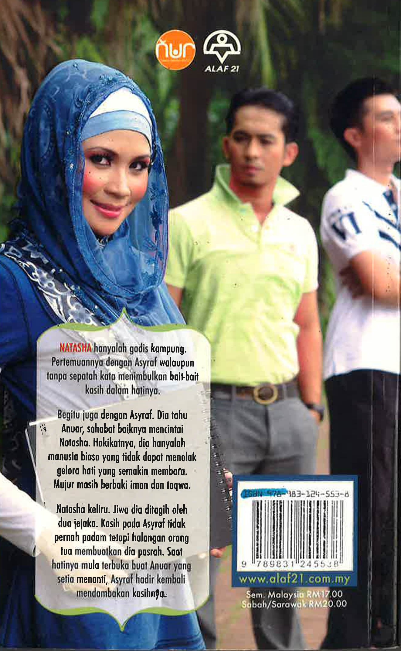 NATASHA hanyalah gadis kampung. Pertemuannya dengan Asyraf walaupun tanpa sepatah kata menimbulkan bait-bait kasih dalam hatinya. Begitu juga dengan Asyraf. Dia tahu Anuar, sahabat baiknya mencintai Natasha. Hakikatnya, dia hanyalah manusia biasa yang tidak dapat menolak gelora hati yang semakin membara. Mujur masih berbaki iman dan taqwa. Natasha keliru. Jiwa dia ditagih oleh dua jejaka. Kasih pada Asyraf tidak pernah padam tetapi halangan orang tua membuatkan dia pasrah. Saat hatinya mula terbuka buat Anuar yang setia menanti, Asyraf hadir kembali mendambakan kasihnya.