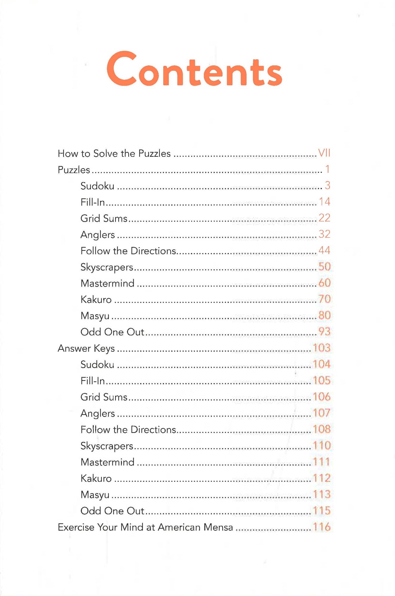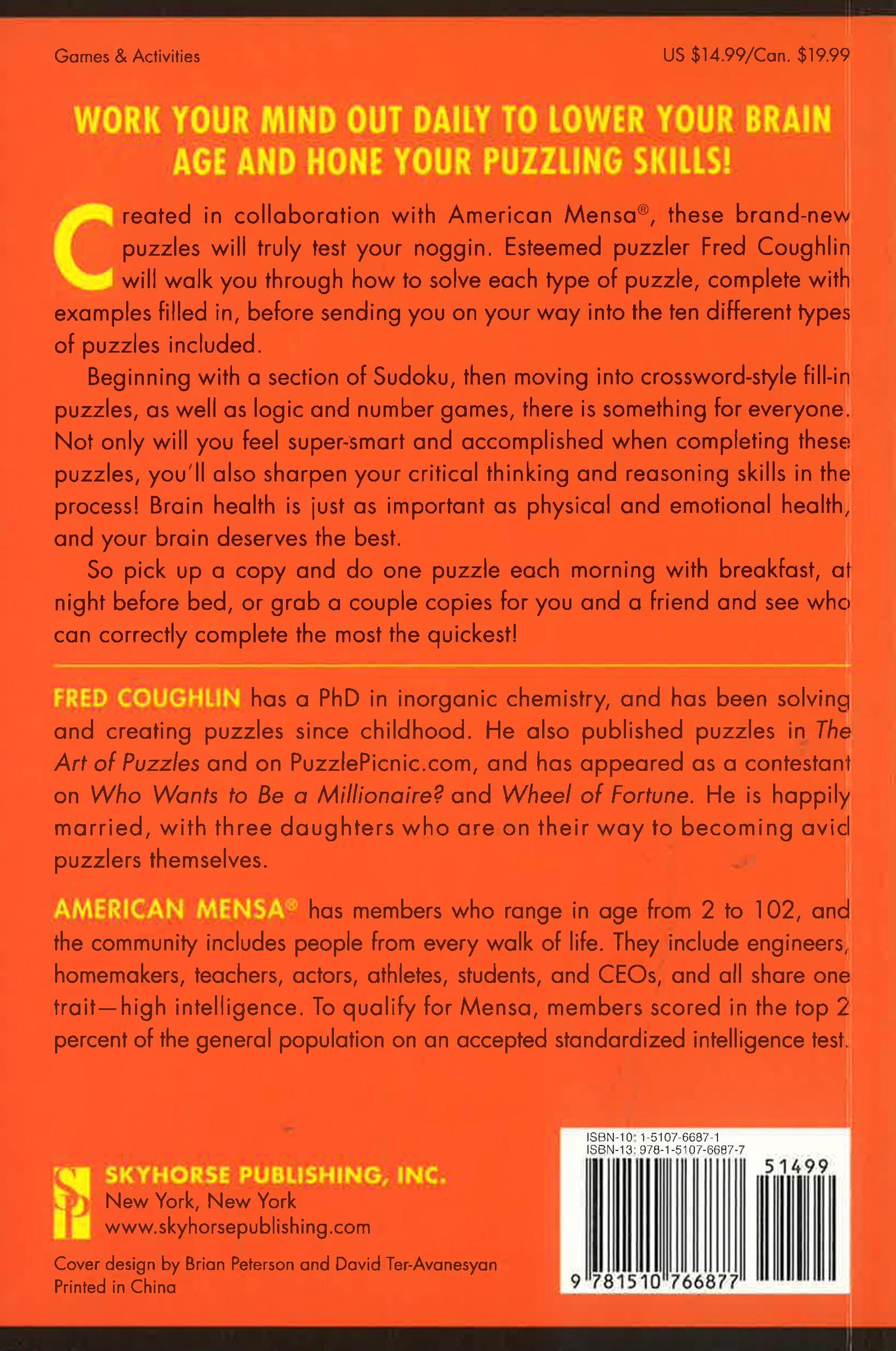 Created in collaboration with American Mensa(R), these brand-new puzzles will truly test your noggin. Esteemed puzzler Fred Coughlin will walk you through how to solve each type of puzzle, complete with examples filled in, before sending you on your way into the ten different types of puzzles included.