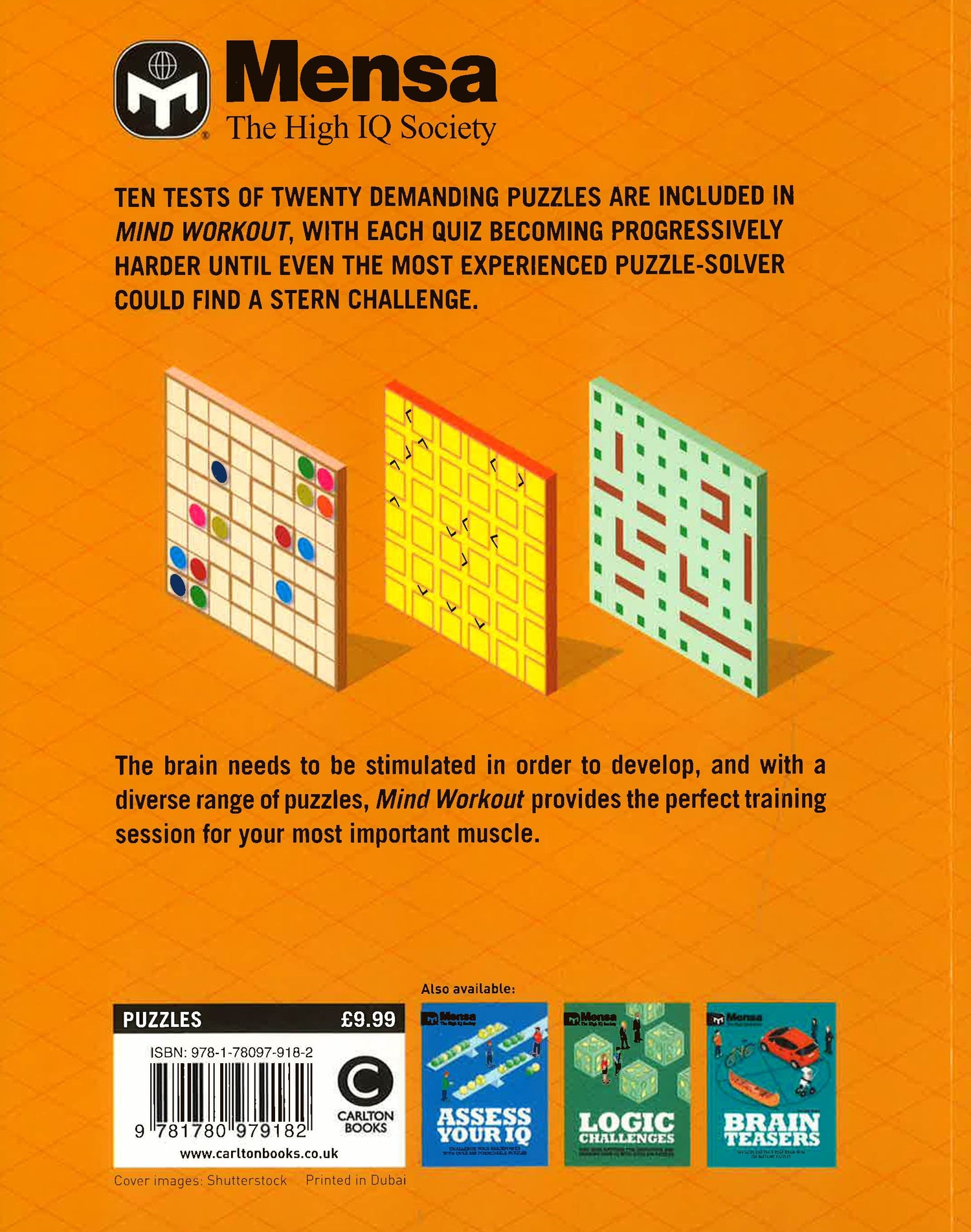 The book contains a series of workouts specifically designed by Mensa's finest puzzle setters to stretch and mould your mind muscle. There are 10 tests consisting of 20 puzzles each, focussing mainly on logic puzzles both traditional and non-traditional, from Skyscrapers and Number Pyramids to more exotic puzzles like Kropki and Hashi. Mensa: Mind Workout has exactly what you need to make your brain healthier, fitter and faster - leading to benefits in all areas of your life.