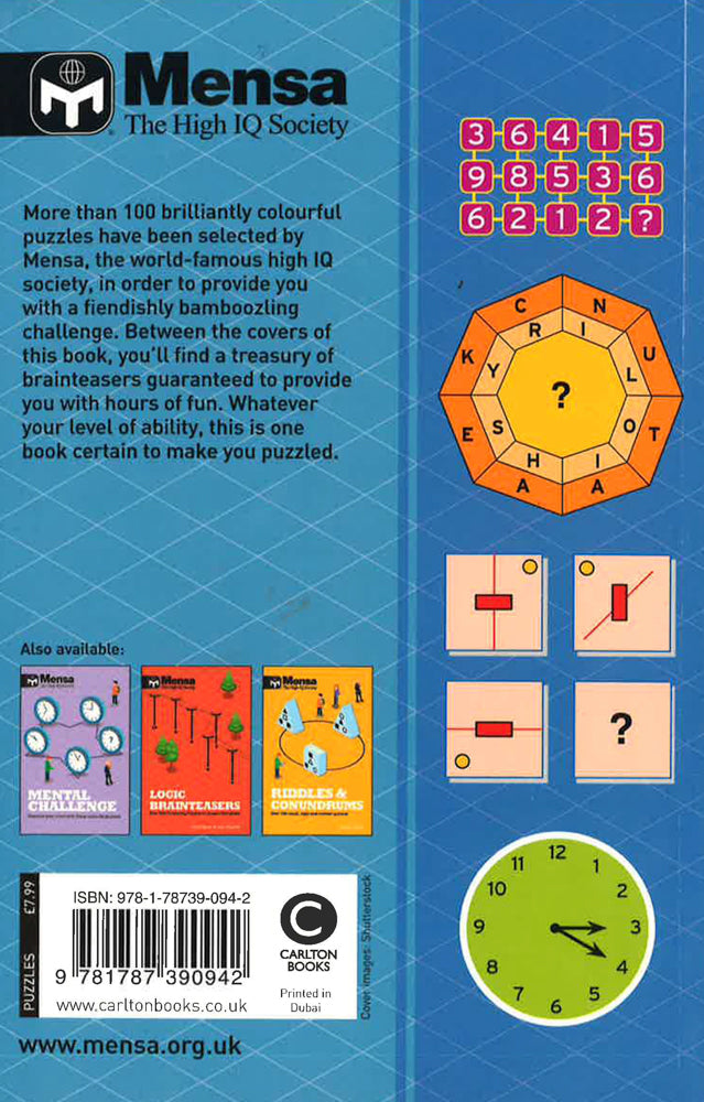 Exercise your mind with this fabulous selection of 100 full-colour puzzles from Mensa, the world-famous high IQ society. Between the covers of this book you'll find a treasury of brain-teasers such as visual puzzles, games and riddles, all graded in difficulty, to tax the mind. This book is guaranteed to provide you with hours of fun, all while you give your mind a wonderful workout.