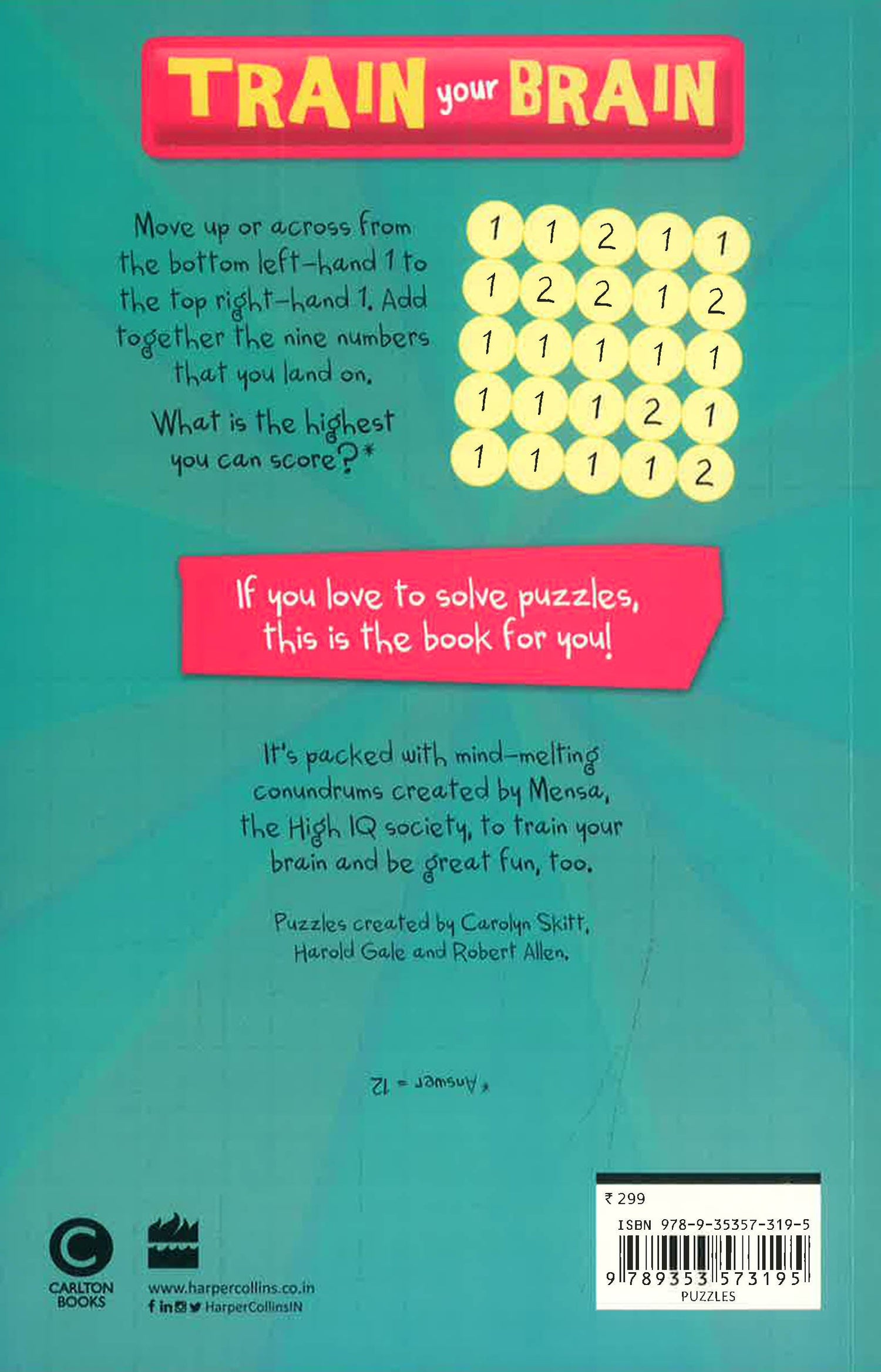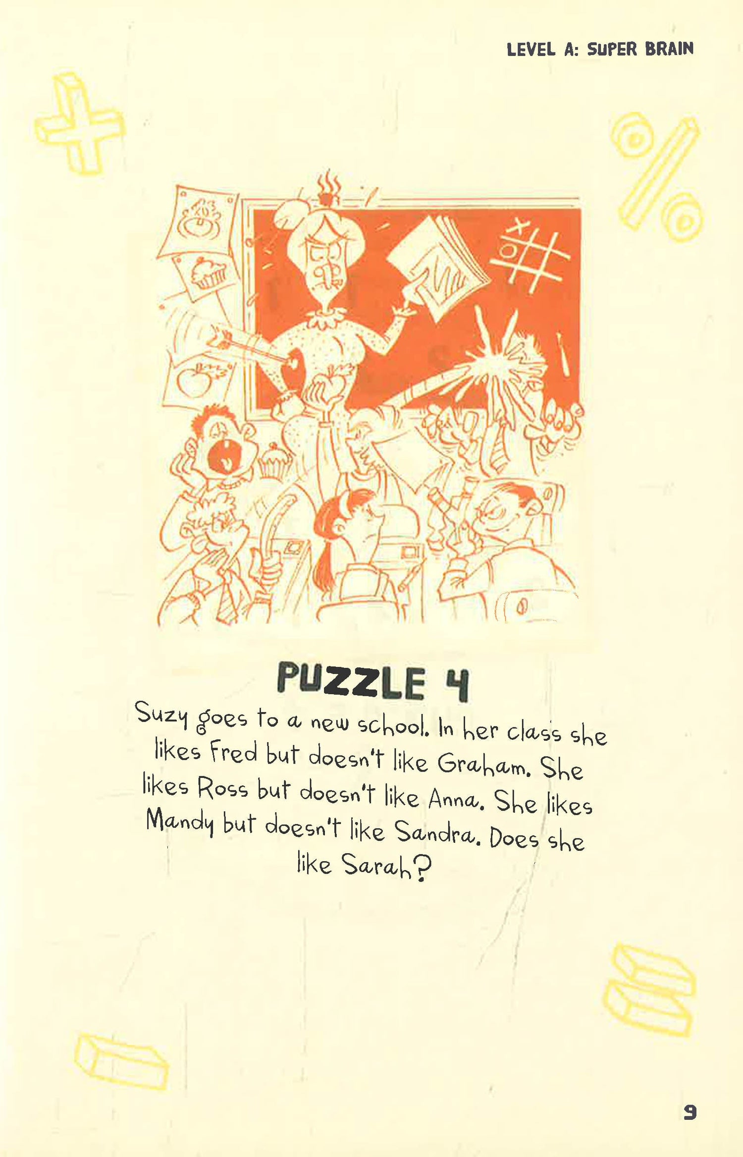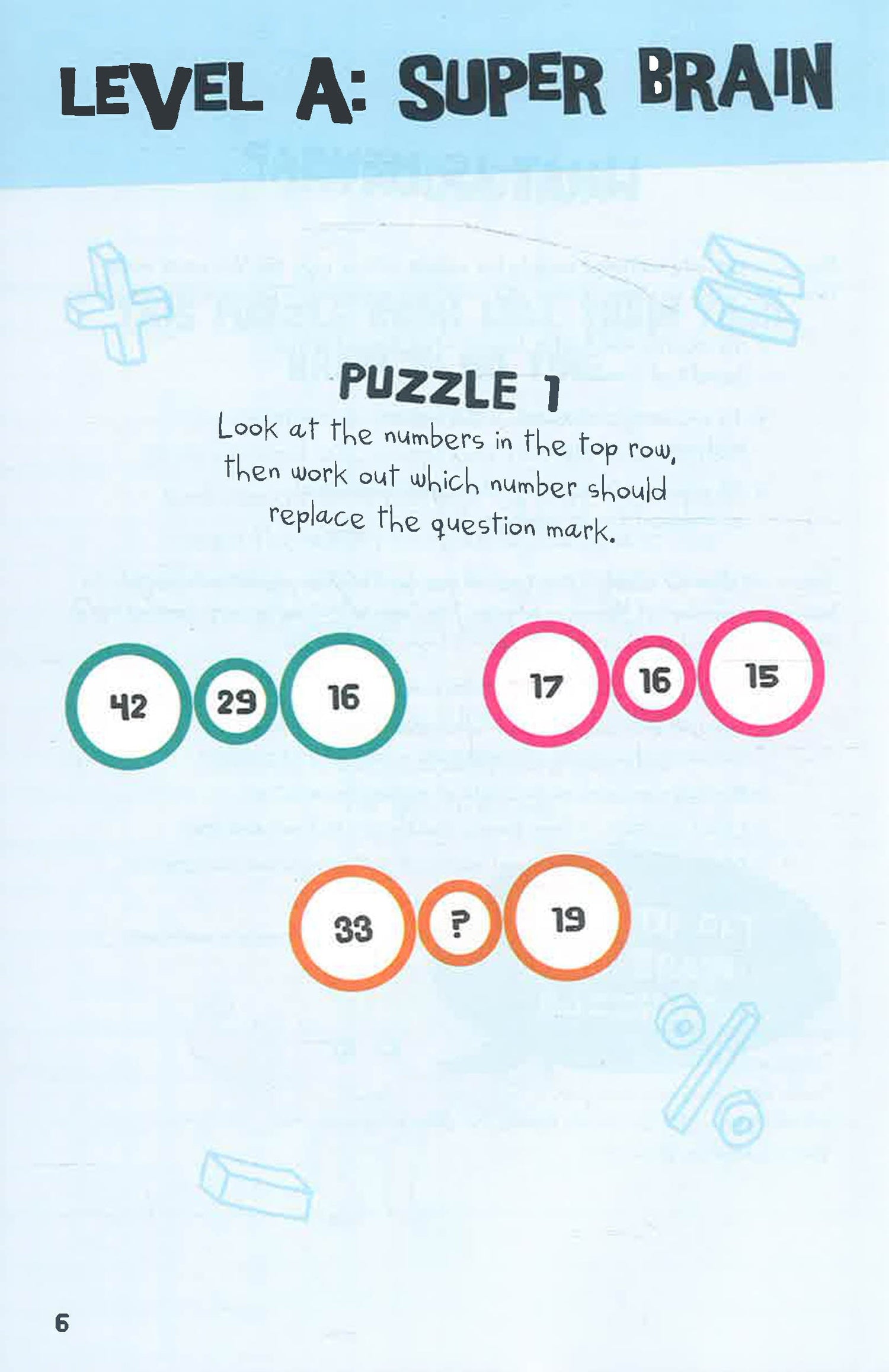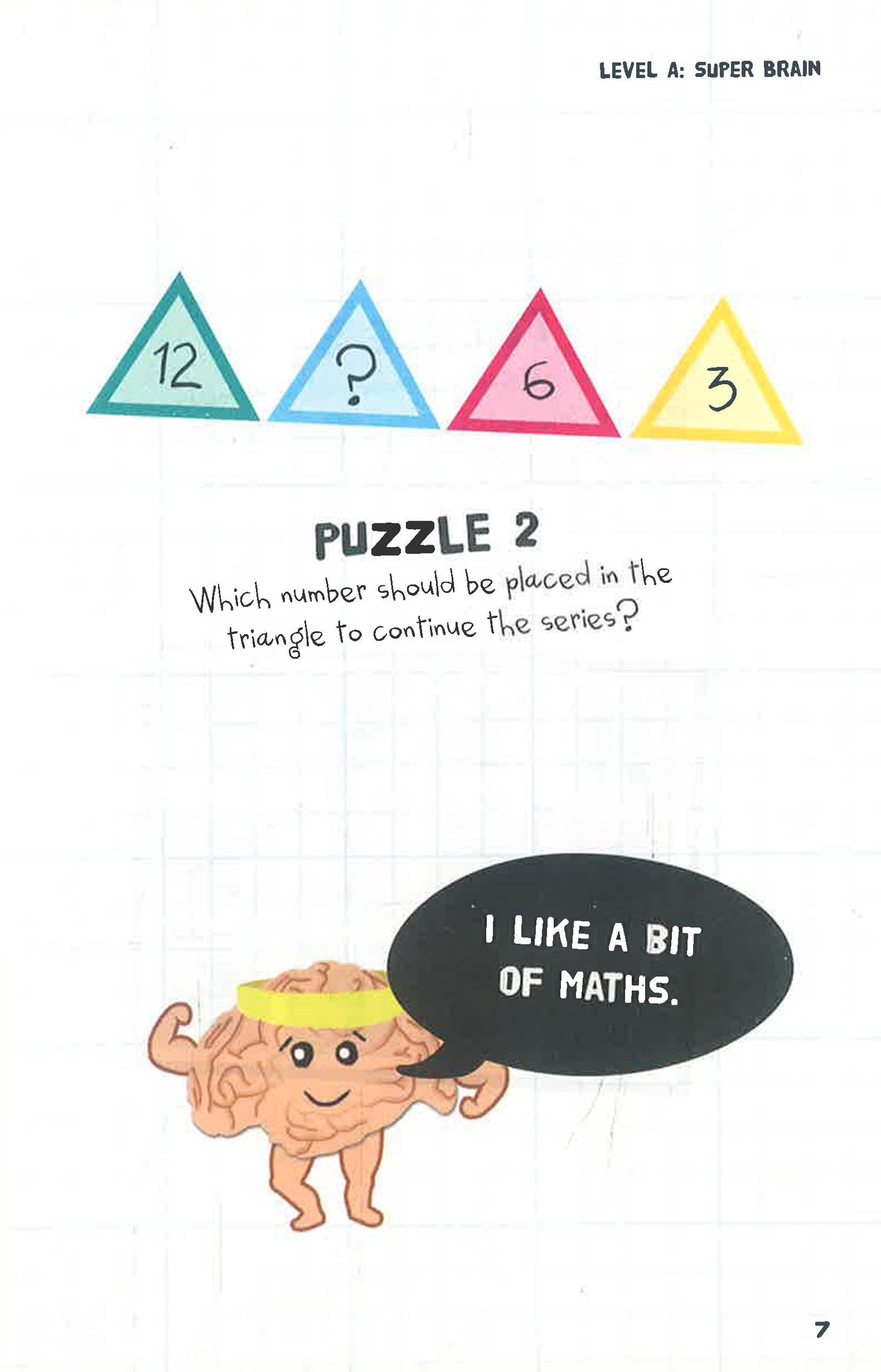 This book is full of marvellous mind-melting puzzles for kids to enjoy. A true puzzler's paradise the book contains 96 pages of puzzles. It is split into three levels of difficulty which gradually get more challenging as the book progresses and kids improve their puzzle skills: Level A is Super Brain Level B is Mega Mind and Level C is Ultra Genius. The different types of puzzles included will test a wide range of puzzle solving skills.