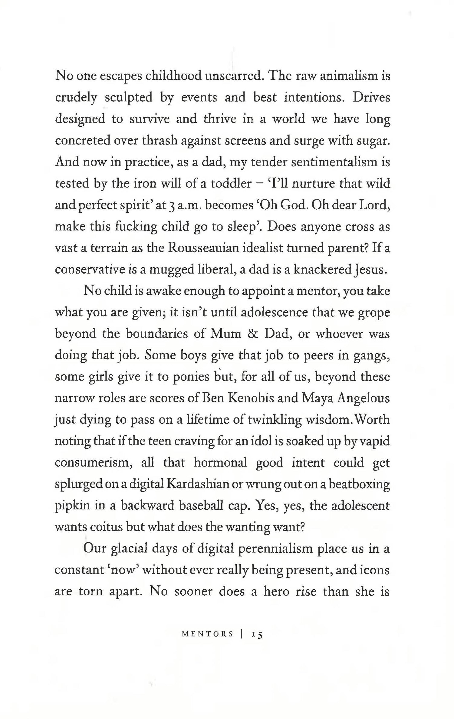 Mentors: How to Help and Be Helped describes the impact that a series of significant people have had on the author ·from the wayward youths he tried to emulate growing up in Essex, through the first ex-junkie sage, to the people he turns to today to help him be a better father. It explores how we all ·consciously and unconsciously ·choose guides, mentors and heroes throughout our lives and examines the new perspectives they can bring.
