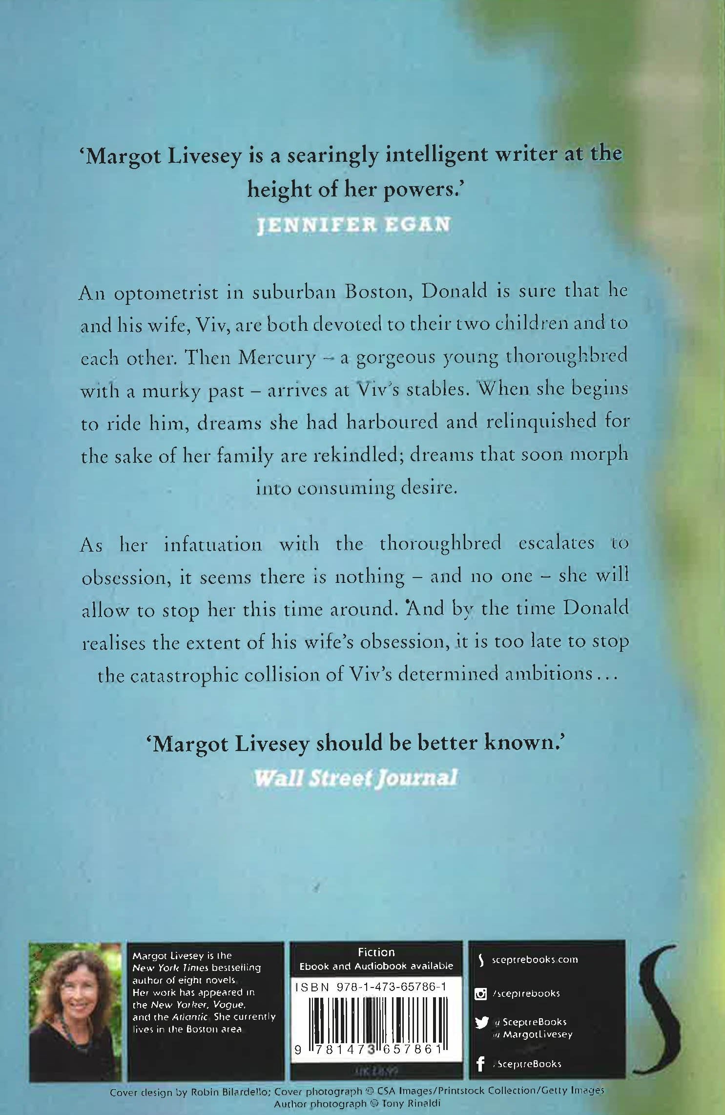 An optometrist in suburban Boston, Donald is sure that he and his wife, Viv, are both devoted to their two children and each other. Then Mercury - a gorgeous young thoroughbred with a murky past - arrives at Viv's stables, and as she begins to ride him, dreams she had harboured and relinquished for the sake of her family are rekindled; dreams that soon morph into consuming desire.