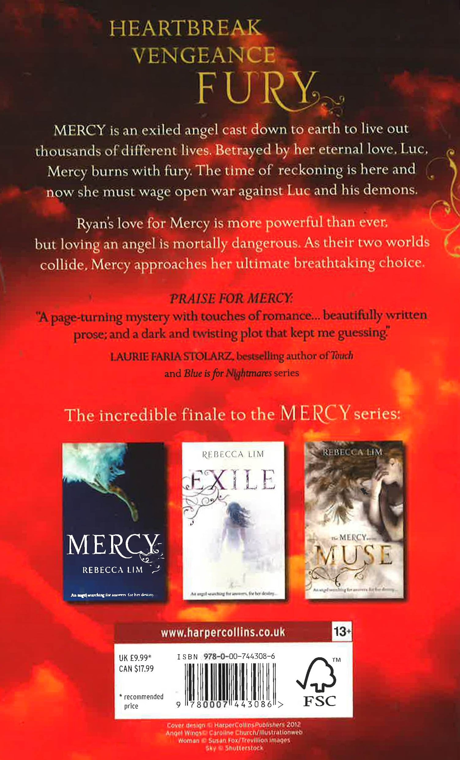 Hell hath no fury like an angel scorned Heartbreak. Vengeance. Truth. Betrayal. Everything that has happened to Mercy over millennia has made her who she is. Now she and The Eight wage open war with Luc and his demons, and the earth is their battlefield. Ryans love for Mercy is more powerful than ever, her guiding light in the hour of darkness. But the very love that sustains her, now places Ryan in mortal danger. Two worlds collide as Mercy approaches her ultimate breathtaking choice. Hell hath no fury like Mercy