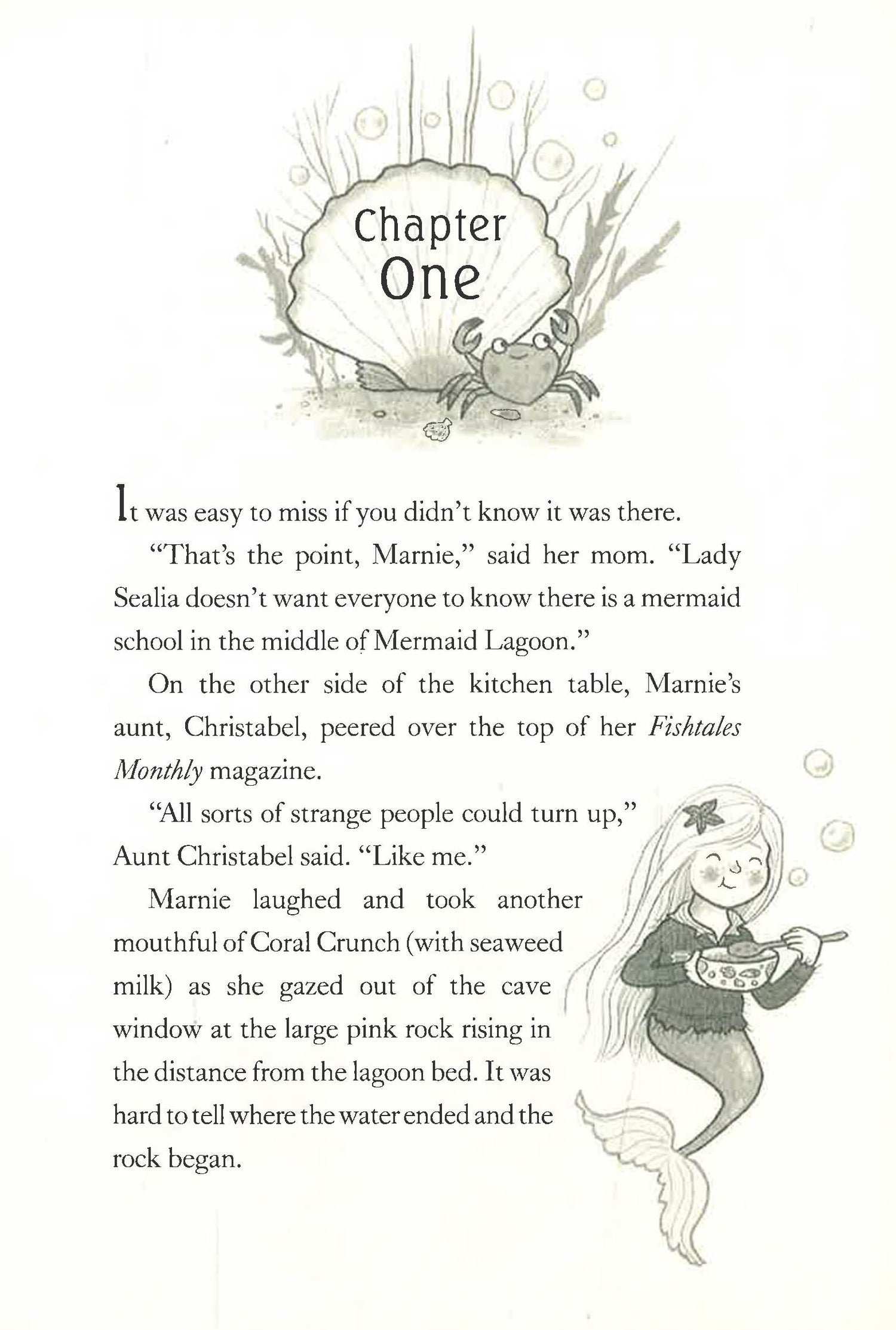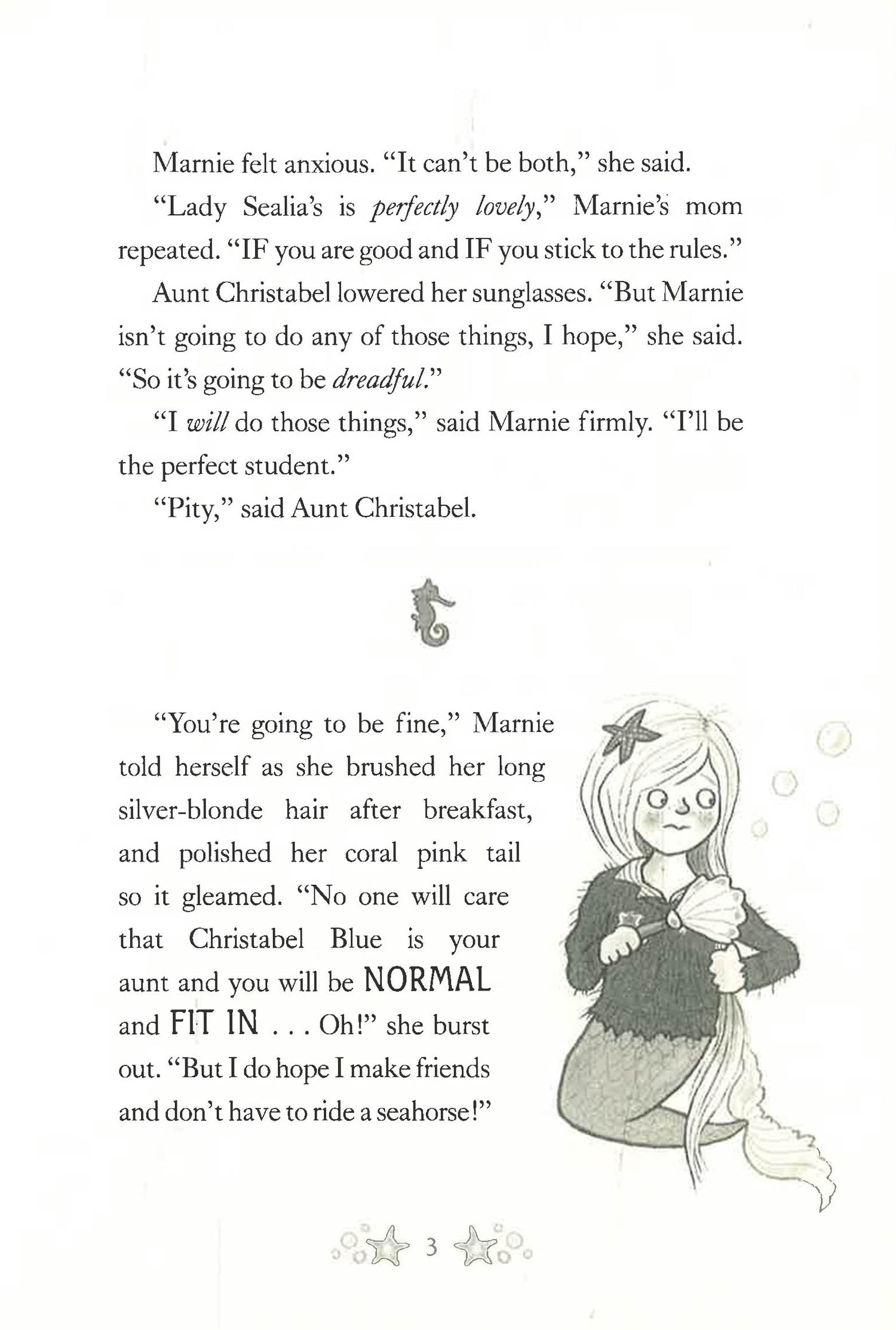 A sweet and sparkling chapter book series about finding your place and believing in yourself! It&;s Marnie Blue&;s first day at Lady Sealia Foam&;s Mermaid School, and she&;s terrified. What if she can&;t make friends? What if she has to ride a seahorse? And what if the teachers assume she&;s just like her Aunt Christabel, a famous singer who was a troublemaker growing up. Even though Marnie is sweet and tries her best to fit in, a mermaid named Orla seems intent on getting her in trouble. But when Orla finds herself in danger, Marnie has to swim to the rescue! Filled with fabulous, fishy fun, Mermaid School is the start of a sparkly new chapter-book series that&;s sure to enchant young readers.