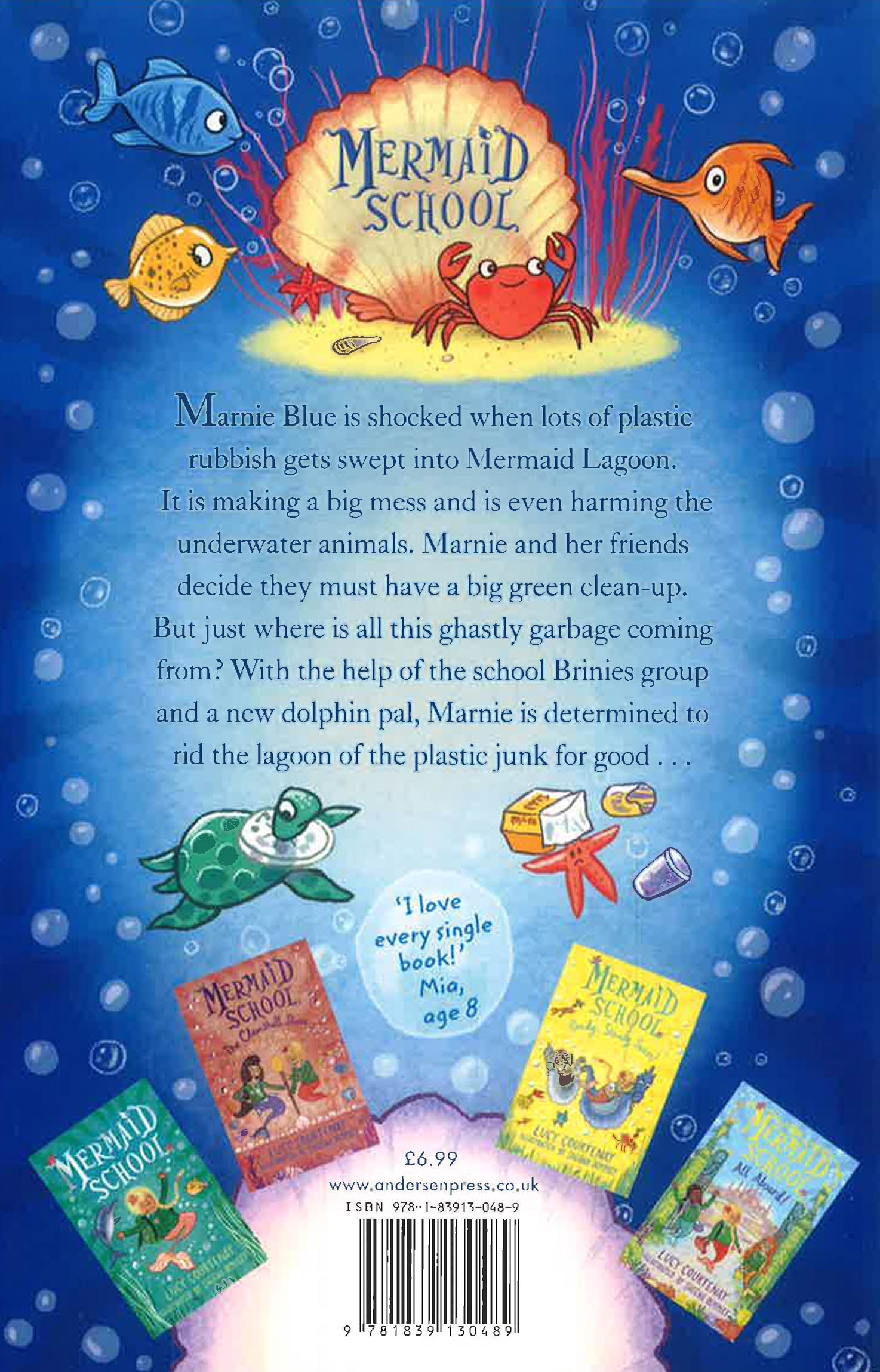 Marnie Blue is shocked when lots of plastic rubbish starts to appear in Mermaid Lagoon. It's causing all sorts of problems and even harming the underwater animals. Marnie and her friends decide enough is enough and they must have a big green clean-up. But just where is all the plastic coming from? With the help of the local Brinies group, a new dolphin pal and a human friend, the mermaids come up with a plan to rid the lagoon of plastic junk for good.