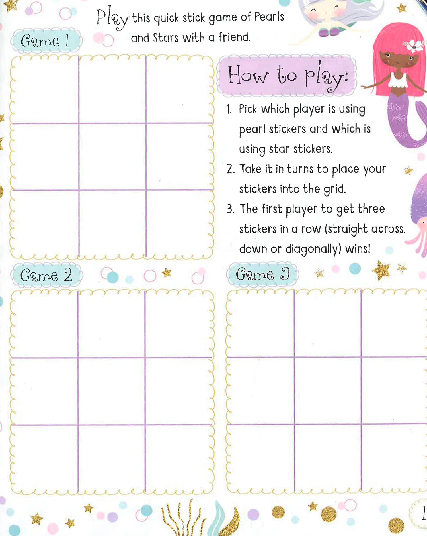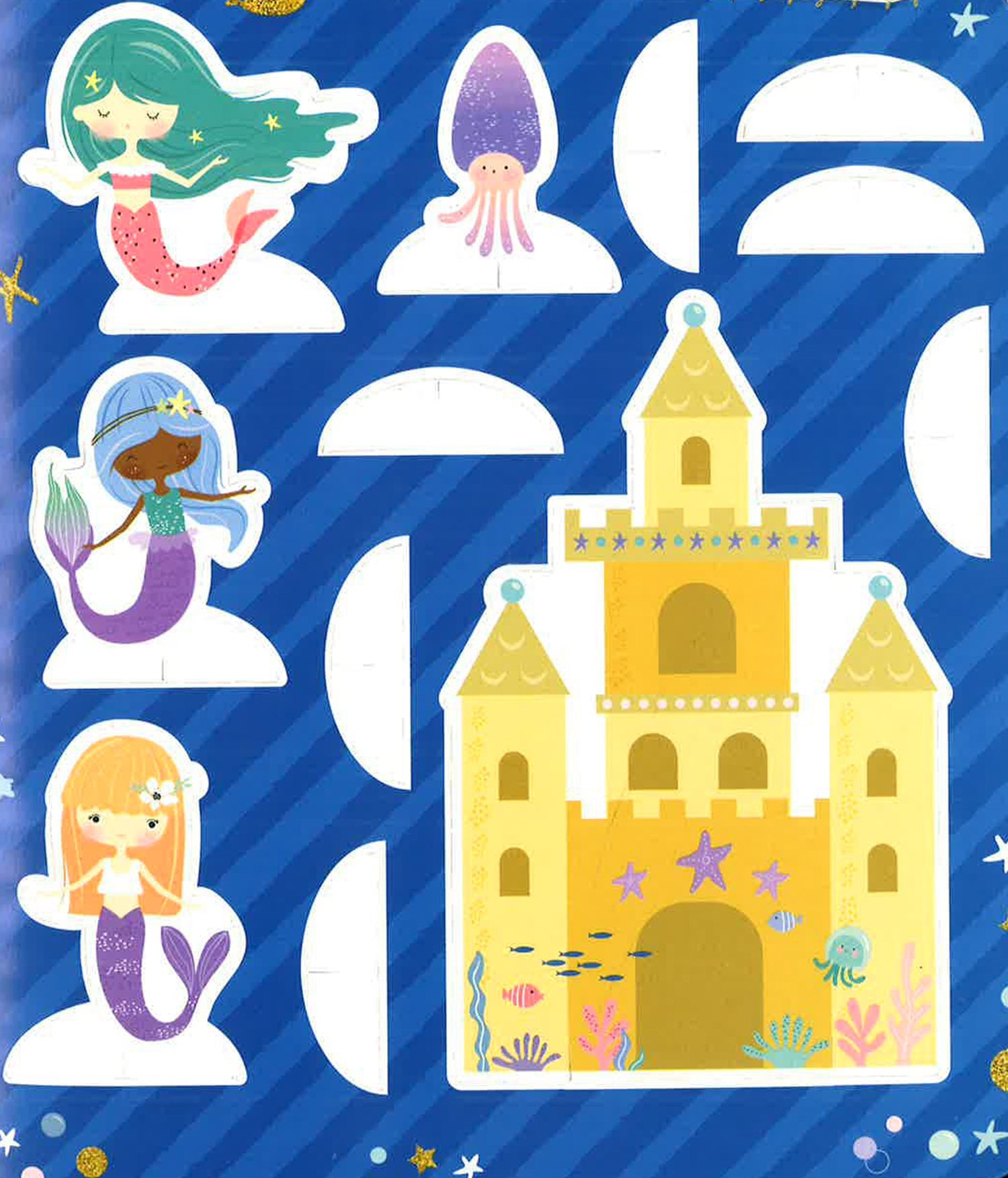 Count the treasure in the cave, lead themermaid through the maze to meet her sisters, and much more. Then use your shimmering stickers and press-out pieces to create your own watery world. Ready, set, splash!