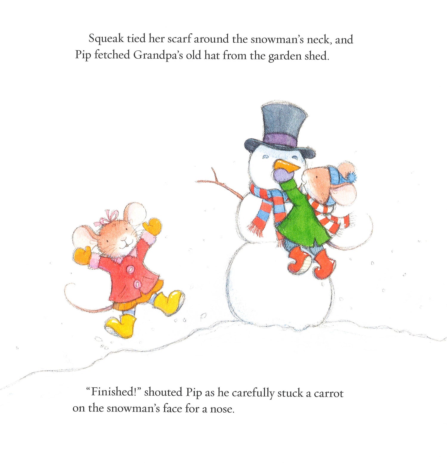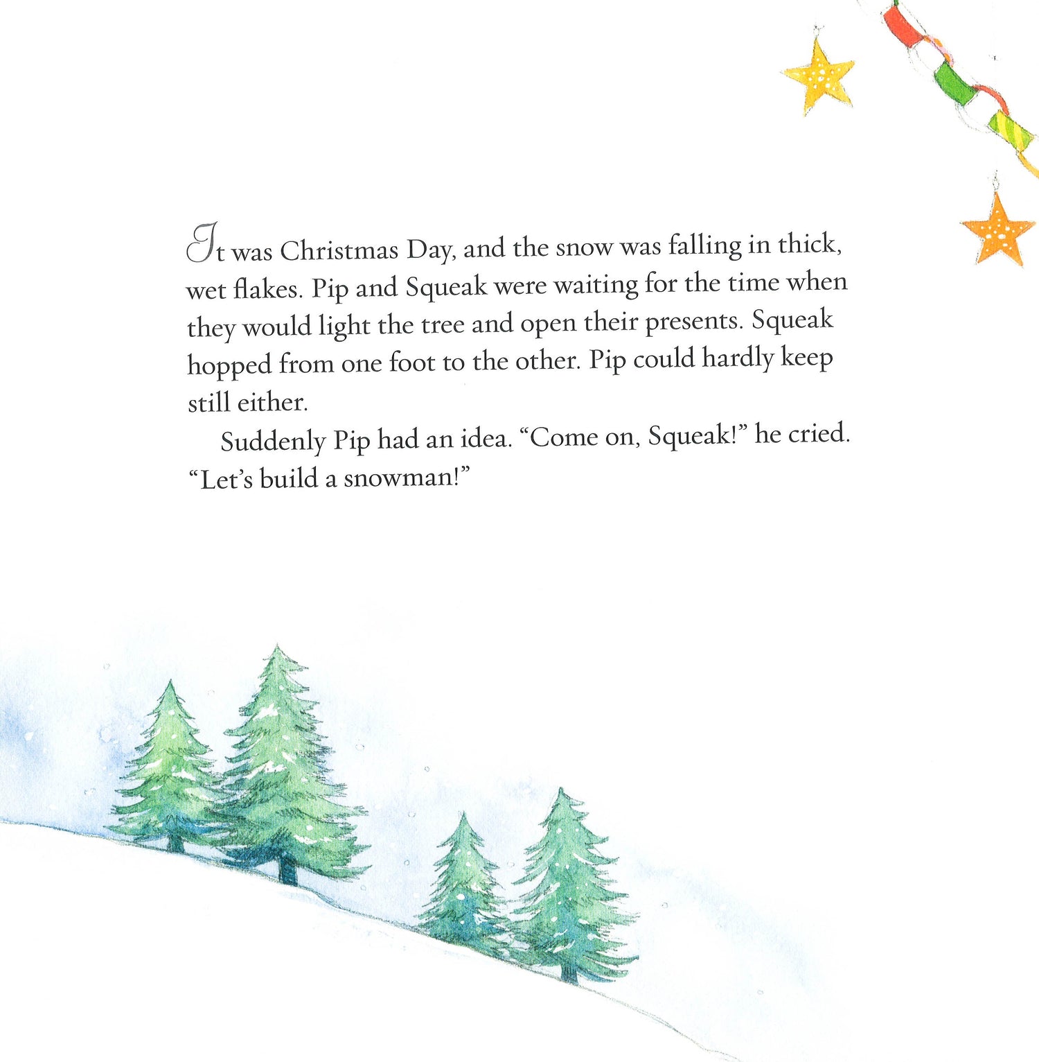 It was a wonderful, snowy Christmas Day. But still, something wasn't quite right. Pip and Squeak keep looking out the window at Snowman standing there in the cold alone, with no one to help him celebrate. A snowman wouldn't be very happy indoors, but perhaps Pip and Squeak can have a Merry Christmas outside?"