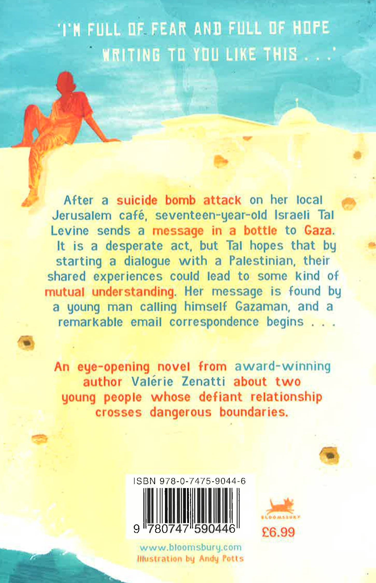 Following a suicide bomb attack on her local Jerusalem cafe, in which she and her friends could so easily have been its victims, a seventeen-year-old Israeli schoolgirl decides to send a message in a bottle to Gaza. An act of hope and desperation, Tal believes that by making contact with a Palestinian she will be able to begin a dialogue through which experiences can be shared, and, just possibly, some kind of mutual understanding achieved. Her message is found by a young man who calls himself Gazaman, and a remarkable email correspondence begins ...This is a mesmerising account of a turbulent relationship conducted between two people whose dialogue is in itself an act of revolution against the situations in which they both feel themselves to be trapped.