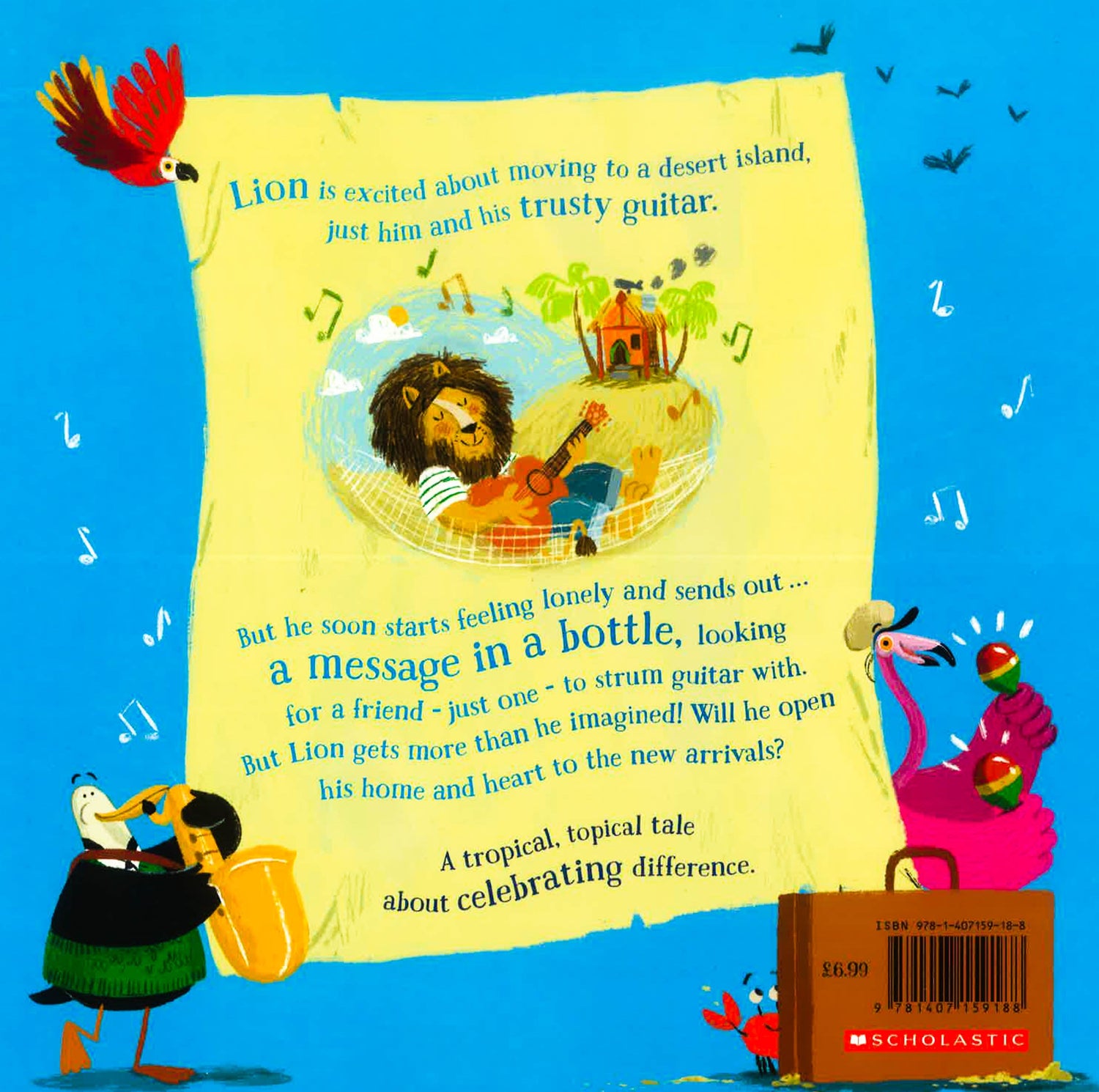 Lion is fed up with the city and moves to a desert island, just him and his trusty guitar. But he soon starts feeling lonely and sends out a message in a bottle, looking for a friend - one friend - to strum guitar with. No one comes, so Lion sends out more and more bottles. Suddenly, animals of all shapes and sizes start arriving from around the world. There are lots of them... and none of them brings a guitar. Will Lion open his home and heart to the new arrivals? A stunning, topical picture book from an exciting new talent, Matt Hunt.