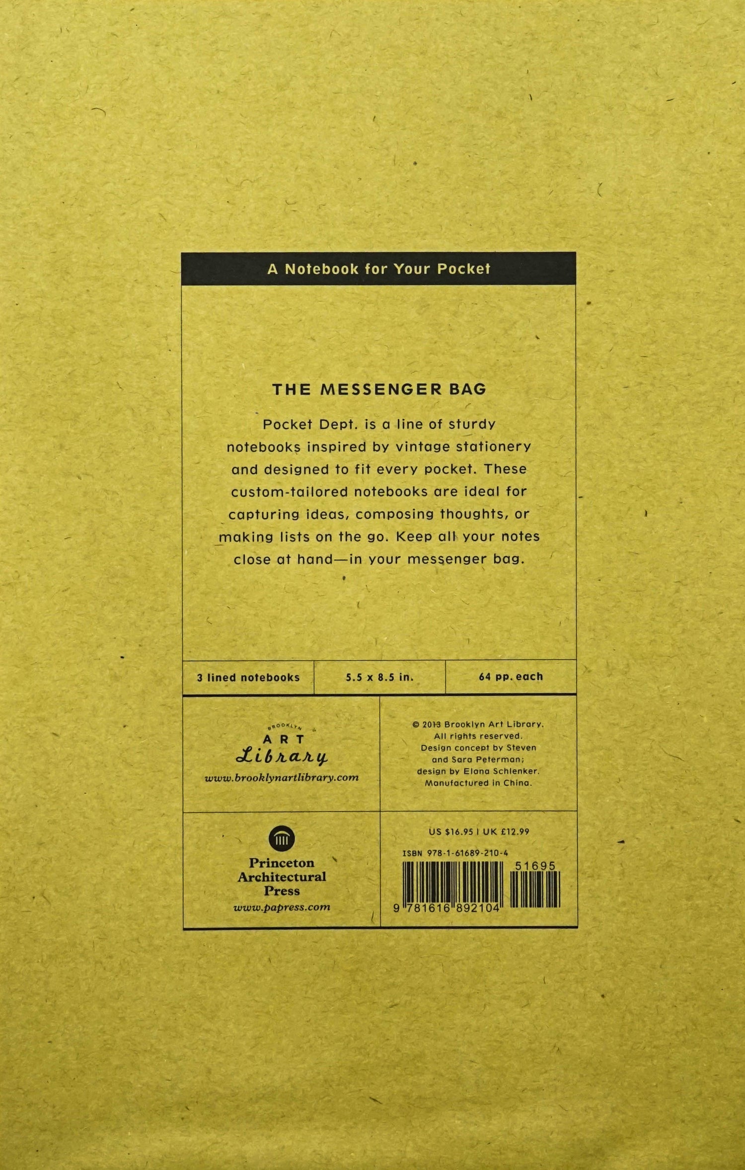 A collaboration with the Brooklyn Art Library, Pocket Dept. is a line of sturdy notebooks inspired by vintage stationery and designed to fit every pocket: back pocket, shirt pocket, backpack, and messenger bag. These custom-tailored notebooks are ideal for capturing ideas, composing thoughts, making lists, or sketching on the go. Packaged in sets of three, these colorful books are as fashionable as they are indispensable.?The Pocket Pack, containing one of each size, comes in a classic, interoffice-style envelope with string-and-button closure.