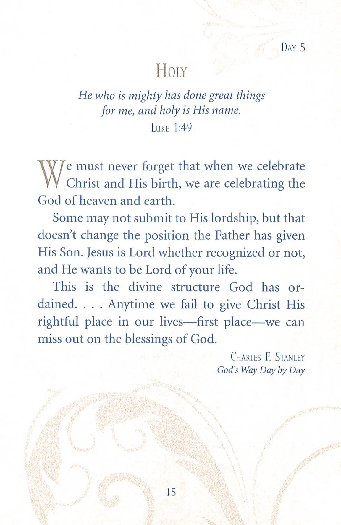 Best-selling Christian authors come together to create a Jesus focused 30-day devotional for Christmas. Messiah, Come and Behold Him is a 30-day scripture devotional that is perfect for Christmas. It illuminates the names of Jesus and provides the reader with inspiration to truly understand the gift that was given to us in the manger. Perfect to remain focused on Jesus during the hustle and bustle of the Holiday season and the affordability makes it the perfect gift to share with many. As a special feature, the lyrics to Handel's Messiah are included at the end. Contributors include: Henry Blackaby, Richard Blackaby, Jack Countryman, Billy Graham, Anne Graham Lotz, Max Lucado, John MacArthur, and Charles Stanley.