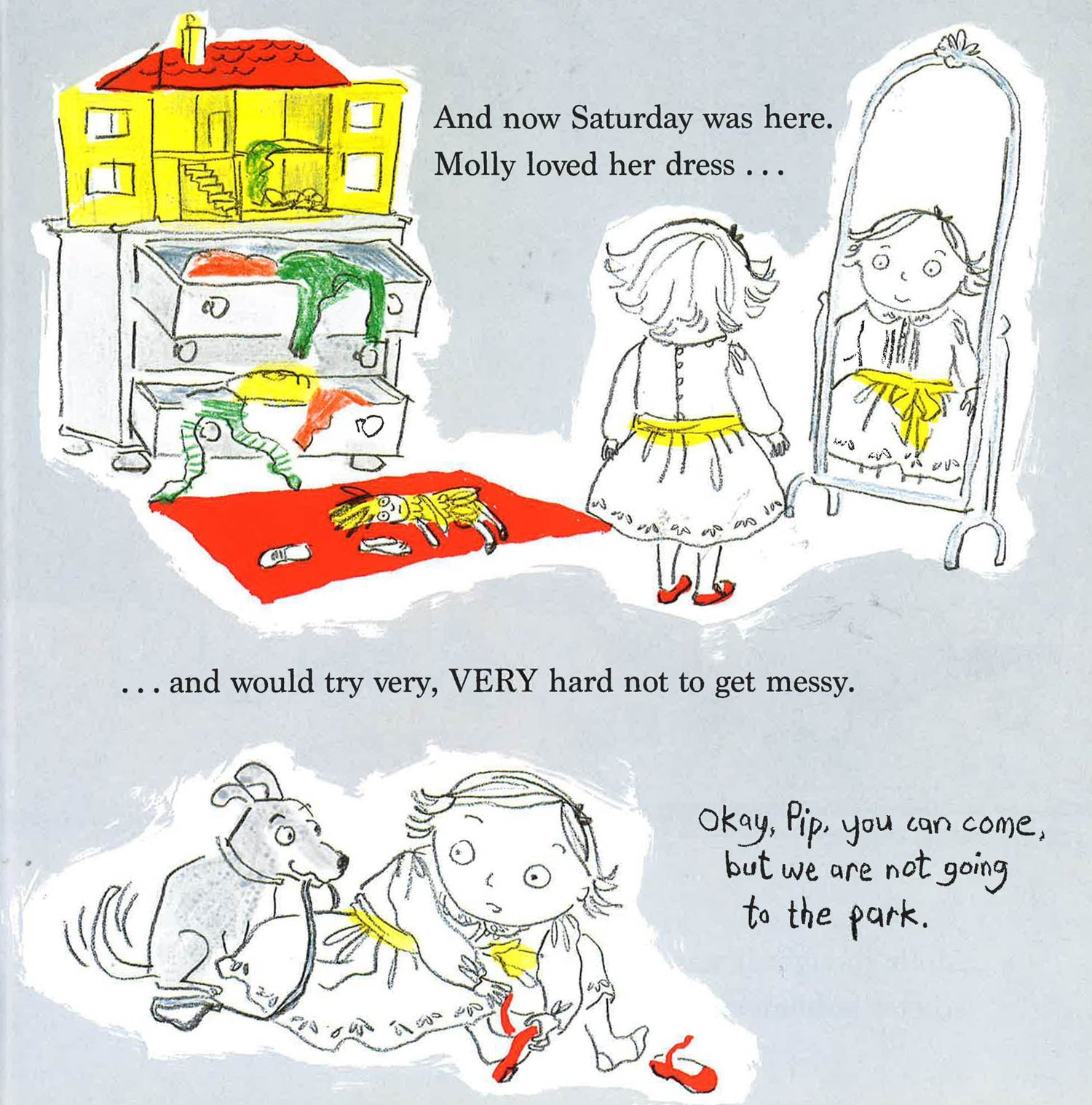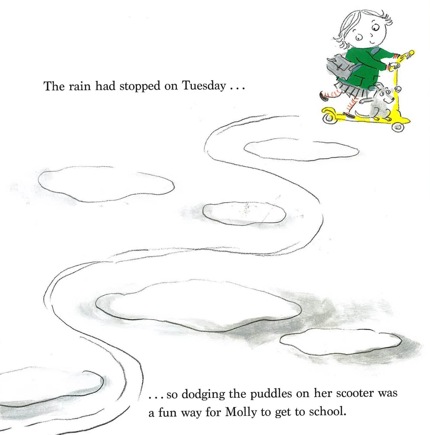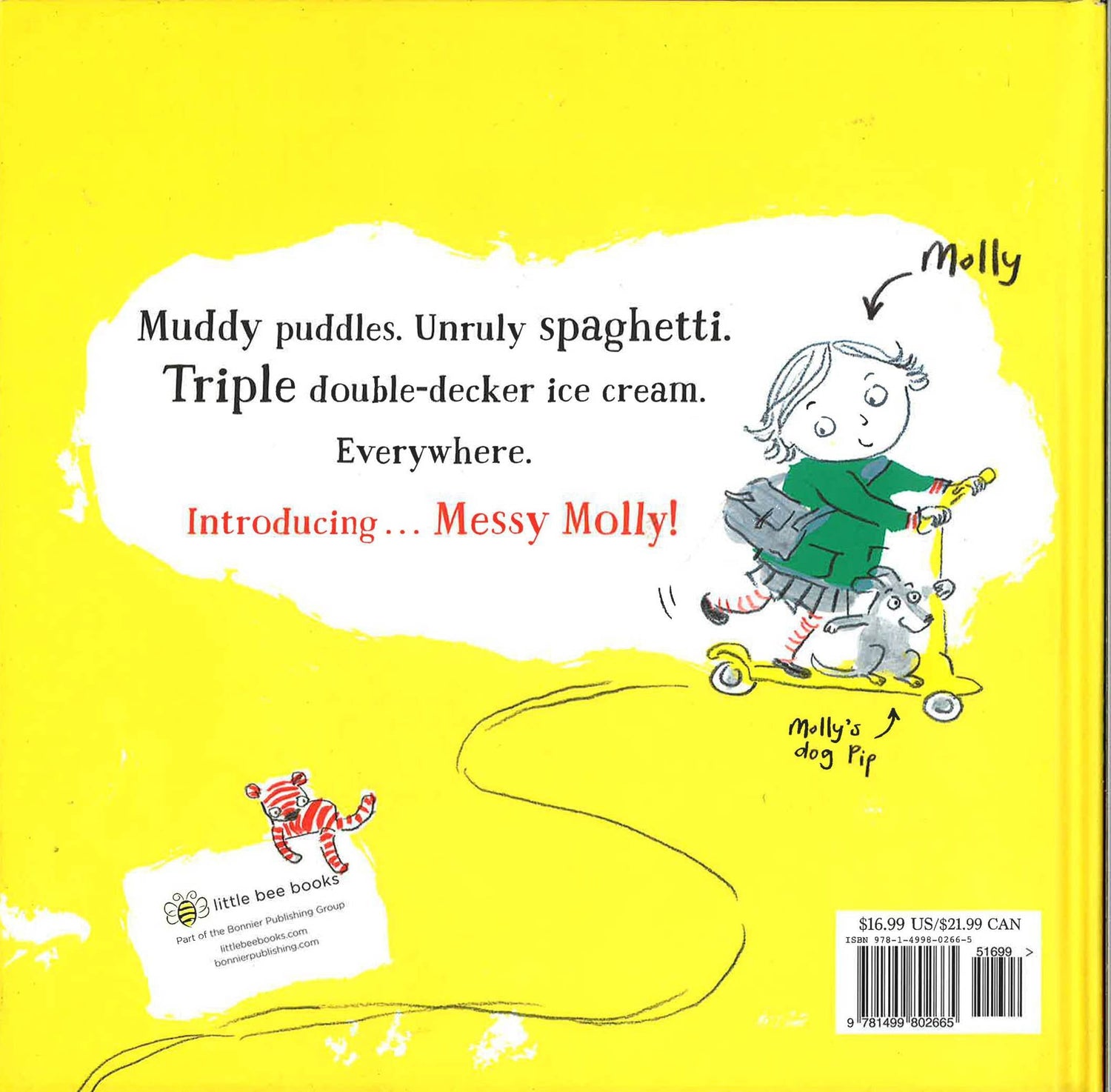 A fun picture book about a messy girl and her dog trying to keep clean for her big performance! Molly is very messy, so she tries to practice keeping clean during the week to prepare for her big singing performance at her school on Saturday. But she puts on her dress and gets messy while eating spaghetti, being out in the rain, falling in the mud, baking a cake, eating ice cream, and playing in the grass. On Saturday, she works as hard as she can to avoid all the messes she encountered during the week. Molly makes it to the performance squeaky clean! Well, almost; she does have a few pawprints on her back from her dog, but no one can see them!