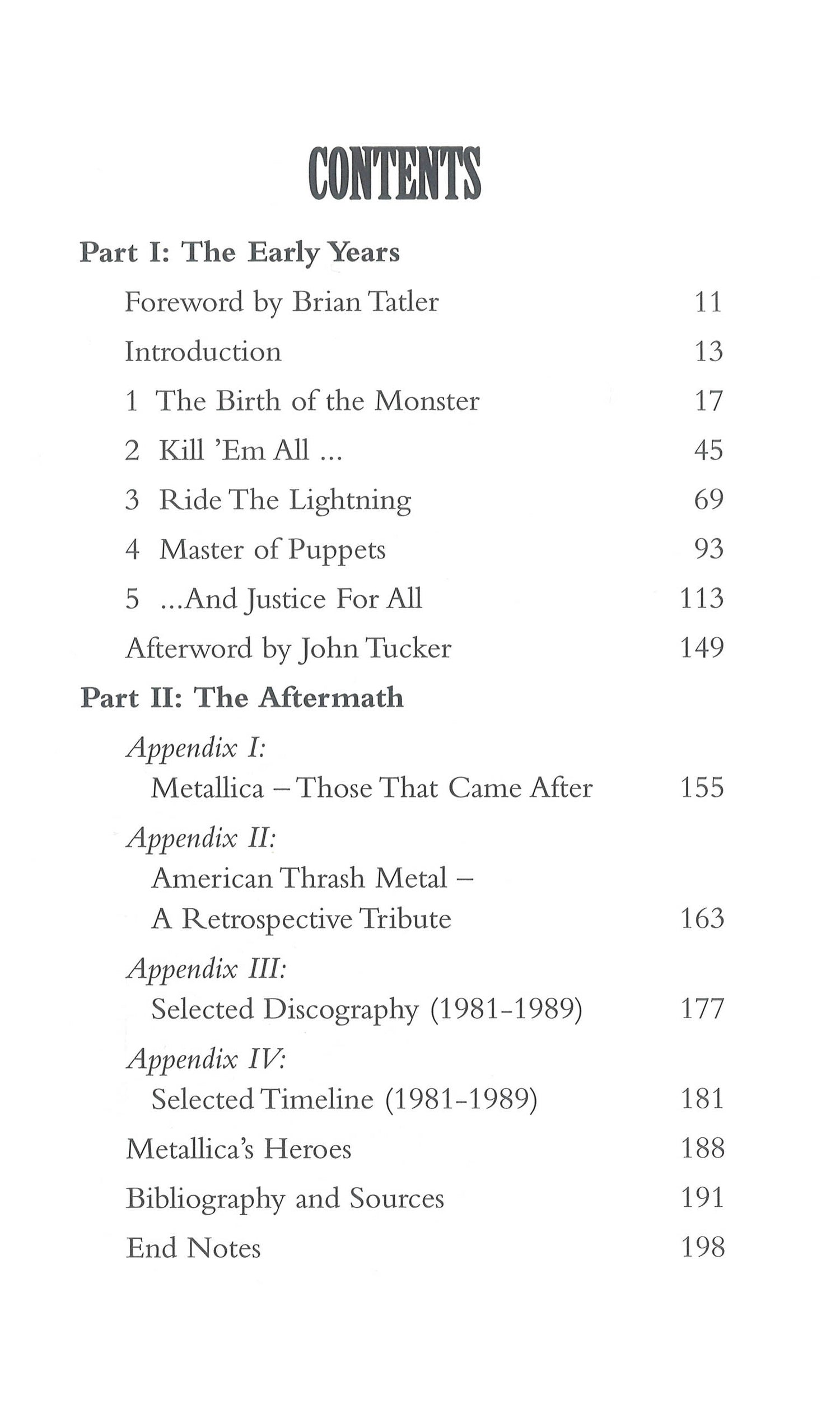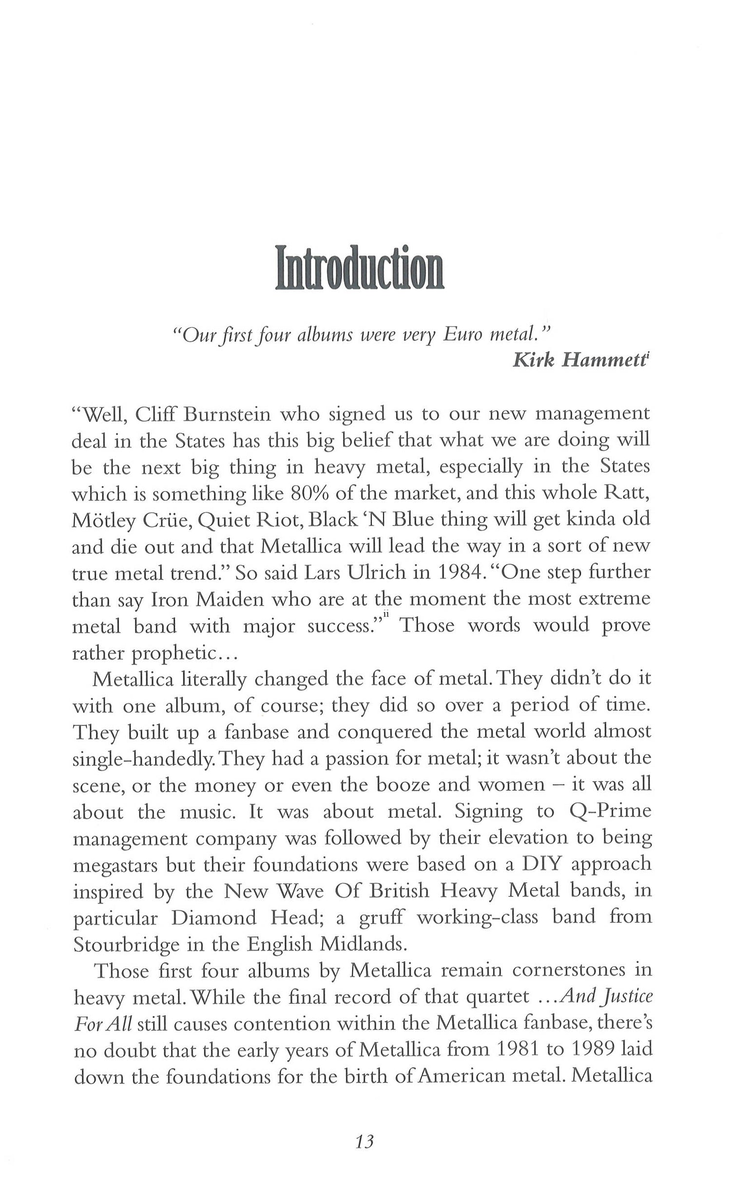 Metallica's early success was built on strong live performances and fierce thrash metal riffs. With the remarkable passion and drive of drummer/founder Lars Ulrich, Metallica became the biggest American metal band in the world and the legacy of those first four albums - Kill 'Em All, Ride The Lightening, Master of Puppets and...And Justice for All - lives on to this day. American thrash metal produced four major bands - Metallica, Slayer, Megadeth and Anthrax - dubbed the Big Four, but out of that unholy collective, Metallica were kings. This book tells the story of how that remarkable global triumph started, with interviews with people who were there, saw those early gigs and numerous other eye-witnesses to the incredible story.