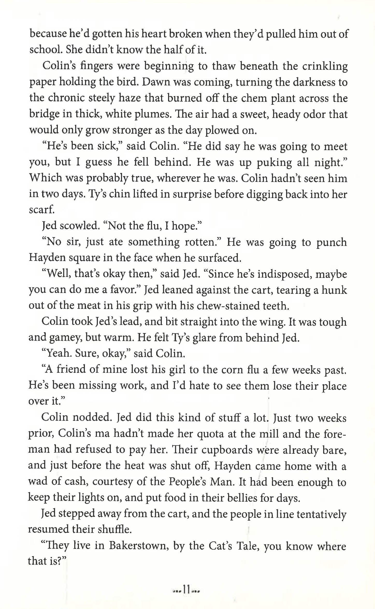 The rules of Metaltown are simple: Work hard, keep your head down, and watch your back. You look out for number one, and no one knows that better than Ty. She's been surviving on the factory line as long as she can remember. But now Ty has Colin. She's no longer alone; it's the two of them against the world. That's something even a town this brutal can't take away from her. Until it does.