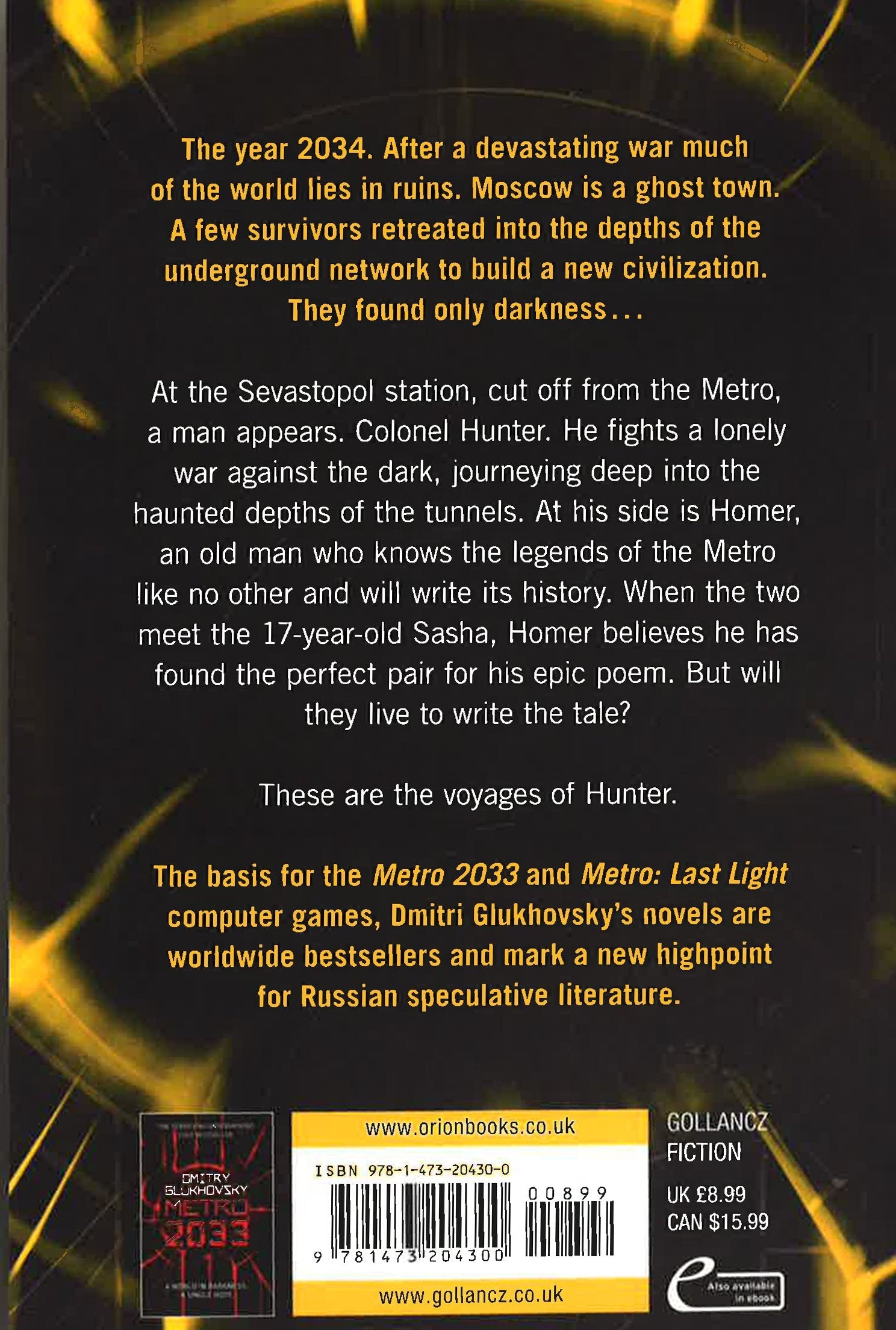 The basis of two bestselling computer games Metro 2033 and Metro Last Light, the Metro books have put Dmitry Glukhovsky in the vanguard of Russian speculative fiction alongside the creator of Night Watch, Sergei Lukyanenko. A year after the events of METRO 2033 the last few survivors of the apocalypse, surrounded by mutants and monsters, face a terrifying new danger as they hang on for survival in the tunnels of the Moscow Metro. Featuring blistering action, vivid and tough characters, claustrophobic tension and dark satire the Metro books have become bestsellers across Europe.