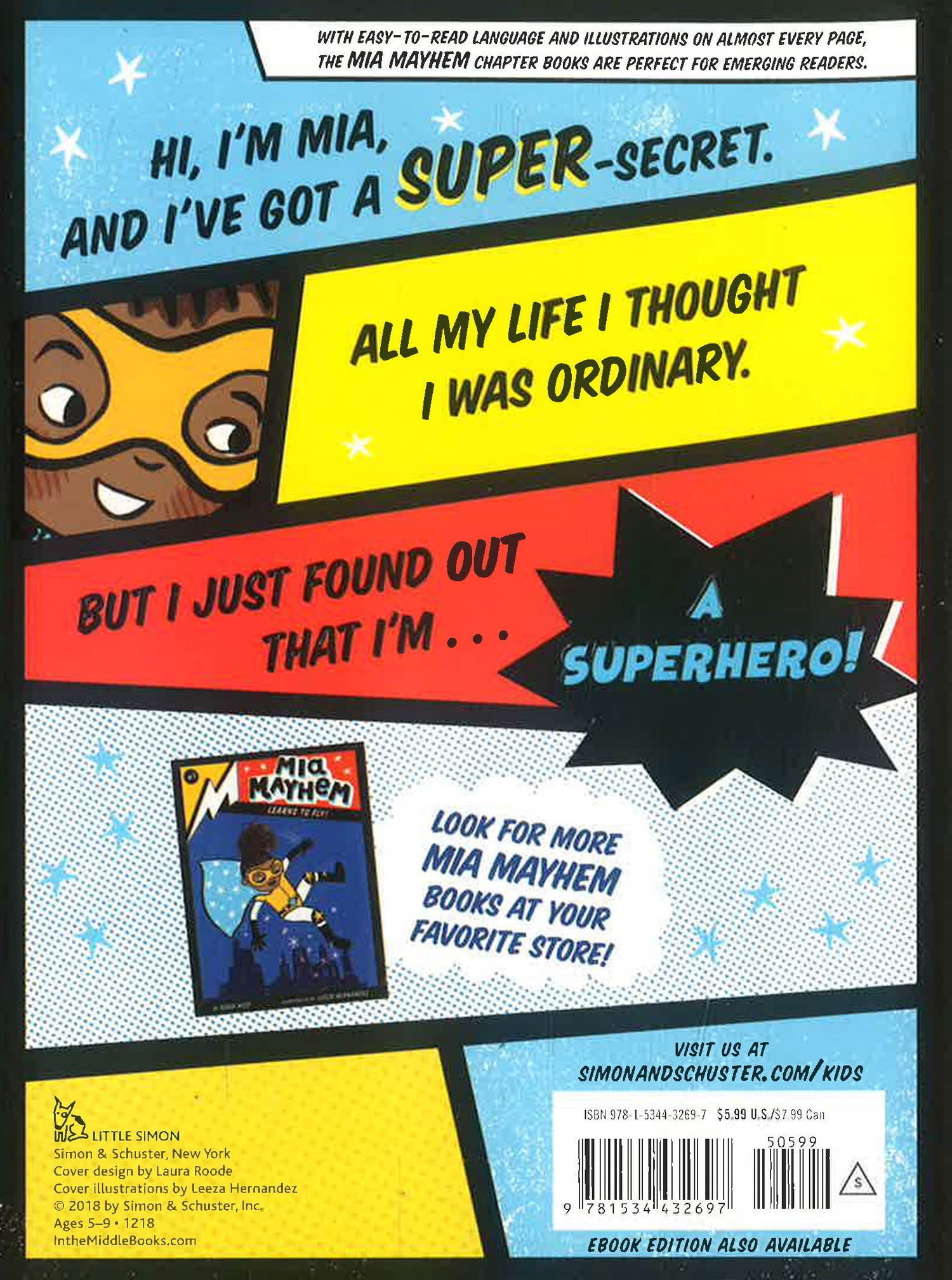 Meet Mia Macarooney, an ordinary eight-year-old who finds out she has an extraordinary super-secret in this first chapter book in the brand-new Mia Mayhem series!Mia Macarooney is a regular eight-year-old girl who finds out that she’s A SUPERHERO! Her life literally goes from totally ordinary to totally super when she’s invited to attend the afterschool Program for In-Training Superheroes a.k.a. THE PITS! And the crazy thing is, in a weird meant-to-be sort of way, all of this news somehow feels super right. Because all her life, Mia thought she was just super klutz...but it turns out, she’s just SUPER! So now, it’s up to Mia to balance her regular everyday life and maintain her secret identity as she learns how to be the world’s newest superhero! With easy-to-read language and illustrations on almost every page, the Mia Mayhem chapter books are perfect for emerging readers.