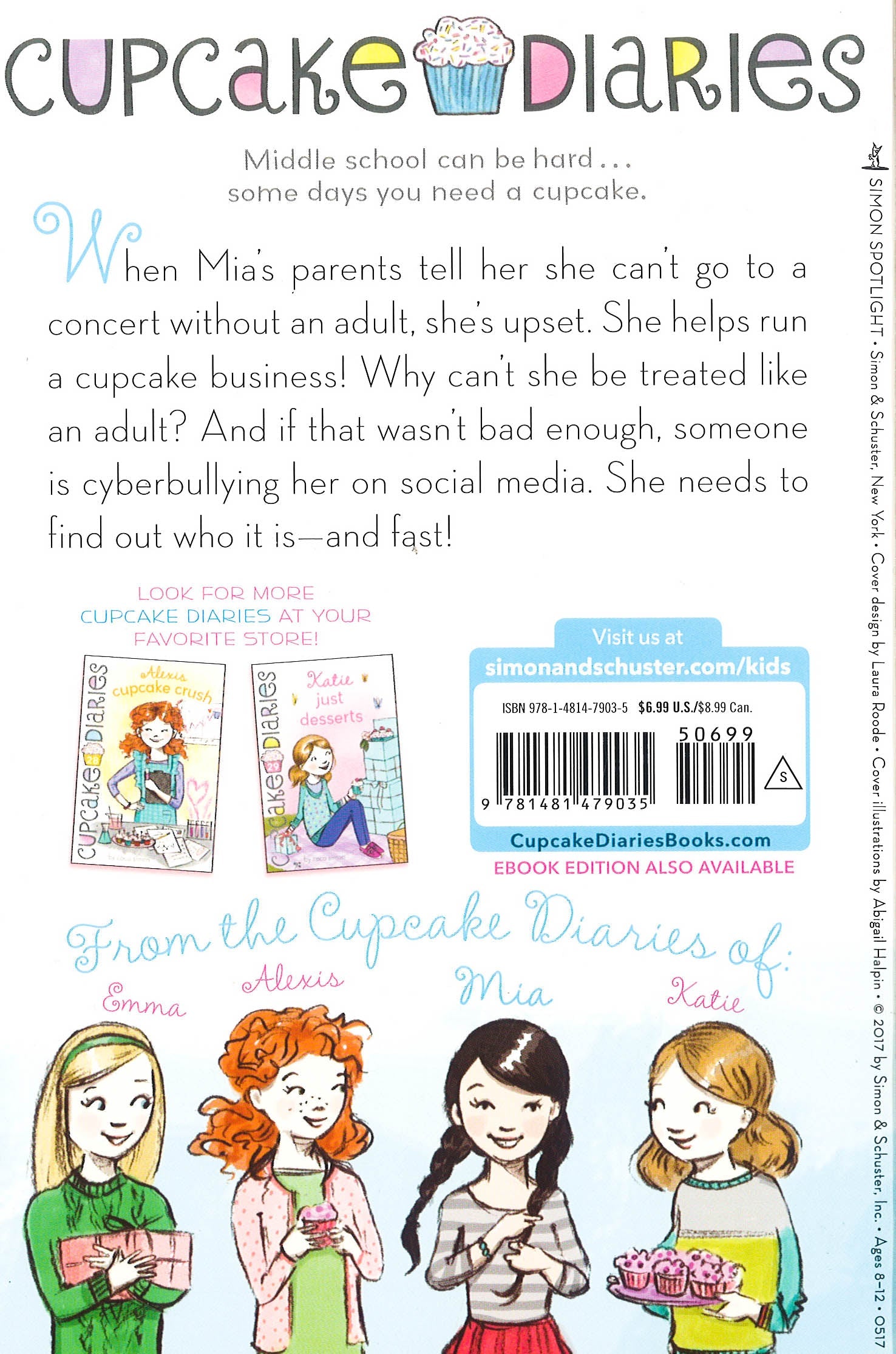Mia is being cyber-bullied, and she's determined to find out who is responsible in the latest addition to the Cupcake Diaries series. Mia is upset when her parents tell her she's too young to go to a concert without adult supervision. She's old enough to help run a cupcake business! Why can't her parents see that she's also responsible enough to do whatever she wants? And just when she's reached a compromise with her parents (her older brother Dan will go to the concert with her), Mia finds out she's being cyber-bullied on social media. It's the Cupcake Club to the rescue as they all help Mia solve her online bullying mystery!