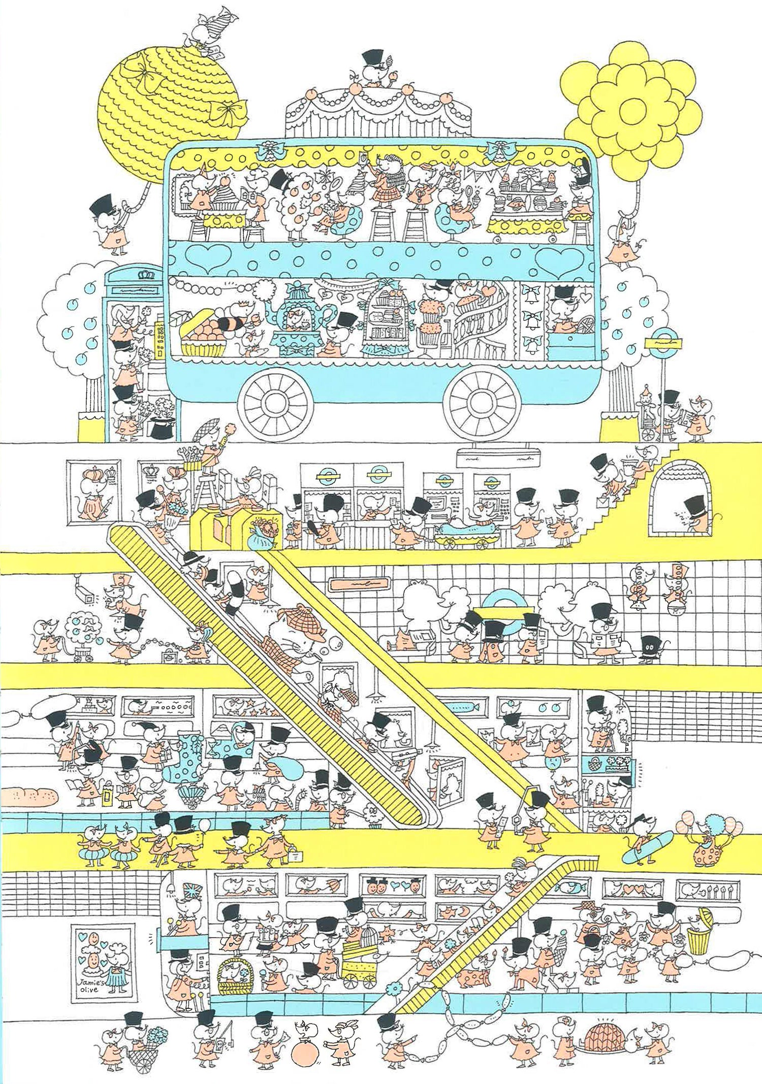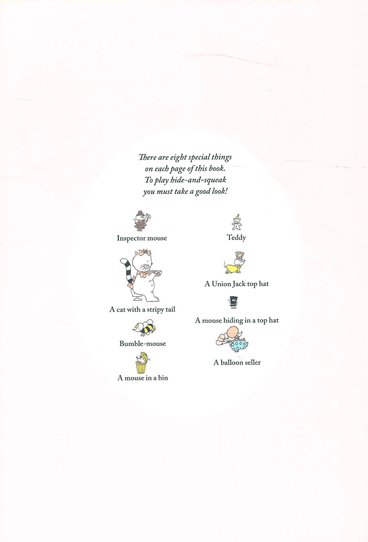 Play a game of hide-and-squeak with all of London's mice. They're flocking to the famous sights, so make sure you look twice! A stripy cat and Sherlock Mouse peep out of every page And every building's packed with mice: the city is their stage! It's a busy morning and all across London mice dressed in top hats and smart overcoats are making their way to work by bus, by tube and by train. The mice of Parliament are at work baking cakes and fishing to feed fat cats who are arriving in a hot air balloon, while artistic mice perform surreal magic tricks inside Tate Modern. The Gherkin's businessmice are busily practising five-pin bowling, while over at the Cheesegrater, mice young and old enjoy hydrosliding through twelve storeys of watery fun! Every page is teeming with surprises and invites children to play 'hide-and-squeak' with a black-and-white cat, a mouse in a bee costume and a mysterious wrapped gift hidden on every page. You'll never see London in the same way again!
