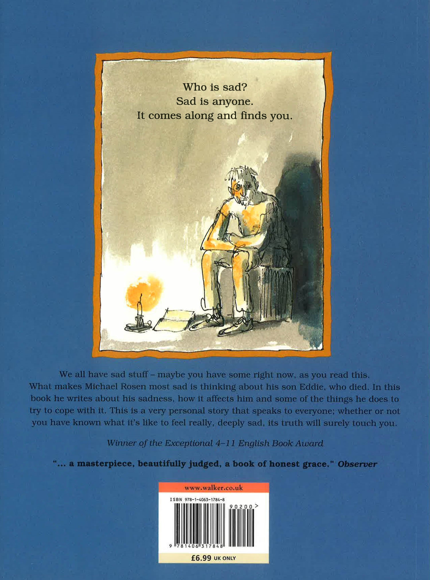 A heartbreakingly honest account of a father's grief for his son from the illustrious pairing of two former Children's Laureates.Very occasionally the term non-fiction has to stretch itself to accommodate a book that fits into no category at all. Michael Rosen's Sad Book is such a book. It chronicles Michael's grief at the death of his son Eddie from meningitis at the age of 19. A moving combination of sincerity and simplicity, it acknowledges that sadness is not always avoidable or reasonable and perfects the art of making complicated feelings plain. It wasn't made like any other book either; Michael Rosen said of the text, " I wrote it at a moment of extreme feeling and it went straight down onto the page ... Quentin didn't illustrate it, he 'realized' it. He turned the text into a book and as a result showed me back to myself. No writer could ask and get more than that." And Quentin Blake says that the picture of Michael "being sad but trying to look happy" is the most difficult drawing he's ever done... "a moving experience."