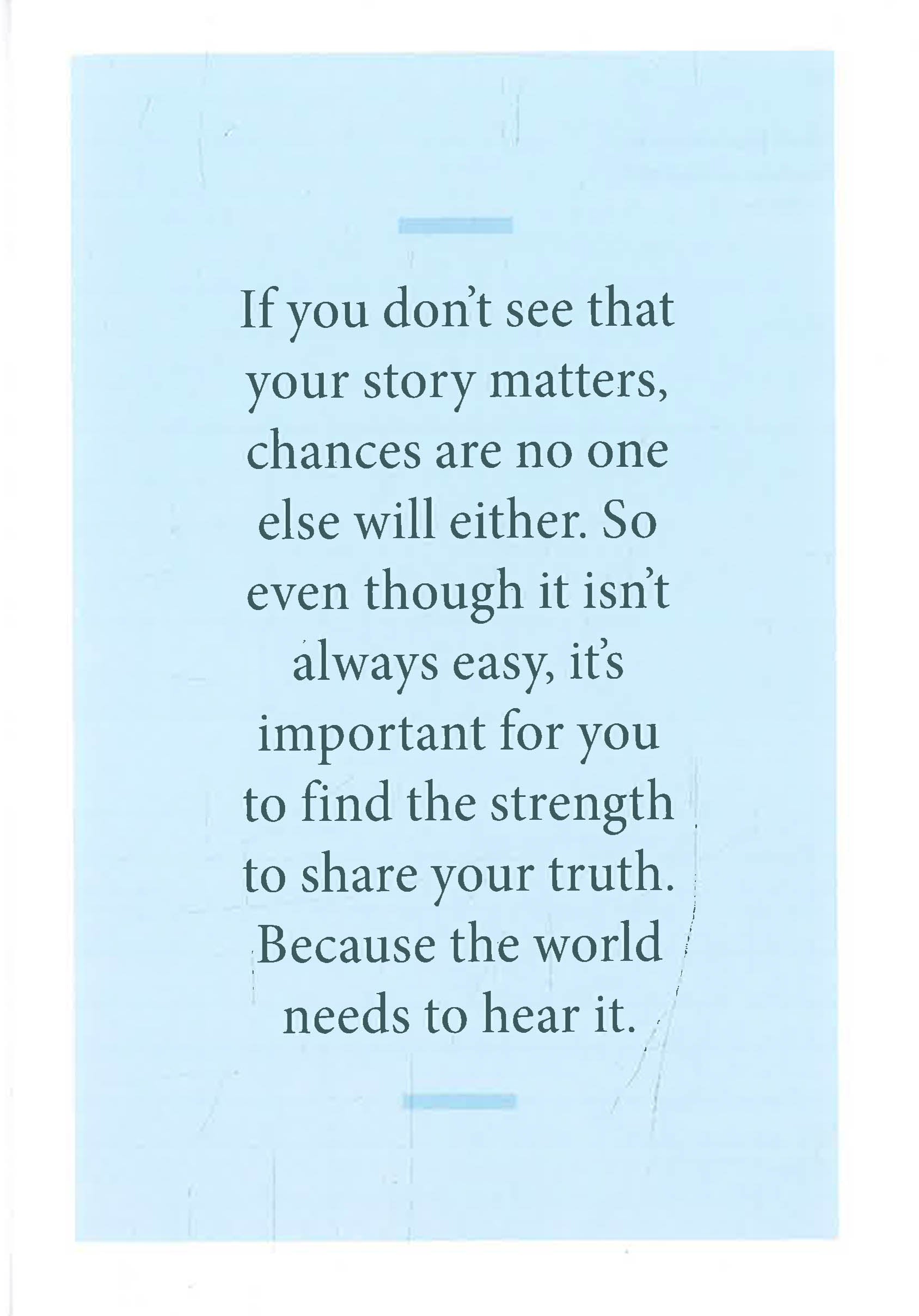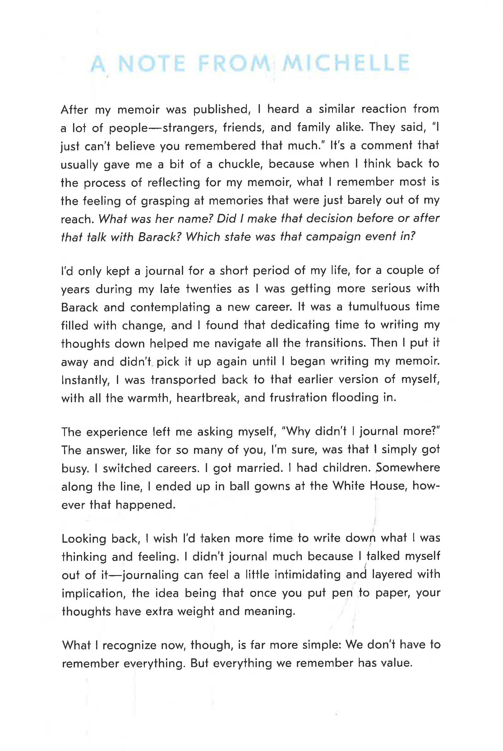 "I hope you'll use this journal to write down your experiences, thoughts, and feelings, in all their imperfections, and without judgment . . . We don't have to remember everything. But everything we remember has value."