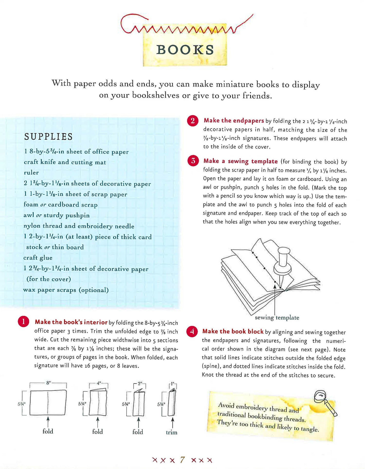 Microcrafts" introduces readers to a world of miniature arts and crafts-each of the 25 projects are no larger than a spool of thread! This title provides simple step-by-step instructions, color photographs, and hand-drawn illustrations that provide everything you need to craft scraps of fabric, yarn, and recyclables into tiny treasures. You'll find tips and tricks for micropapercrafting, microsewing, microcrochet, and even microgardening, plus whimsical ideas for modifying microcrafts into accessories you can wear. No previous crafting experience or pricey materials necessary, just a love of all things small!