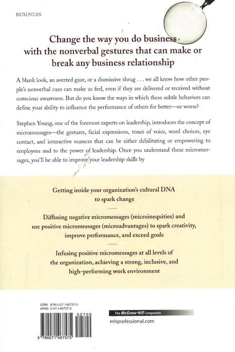 Eliminate negative verbal and nonverbal behaviours and replace them with positive signals that improve the entire organisation'No one argues the importance of the small scale better than Stephen Young, who calls these make-or-break communications micromessages.'- O magazine In this groundbreaking book, Stephen Young, one of the foremost national experts in leadership, introduces his concept of 'micromessages.' Those are critical behaviours-looks, gestures, tone, nuance, inflection, syntax-that tell people what we really think of them, in contrast to the words we speak, and show you how to cultivate positive messages that will enhance the whole company. Key featuresYoung's approach has helped companies around the world generate positive micromessages throughout the organisation, including Apple, Lockheed Martin, H&R Block, Daimler Chrysler, Prudential, and RaytheonReal-life workplace scenarios, self-assessments, and concrete solutions teach readers how to master the skills of interpreting and altering micromessagesStephen Young is recognized as one of the foremost experts in organisational leadership and diversity