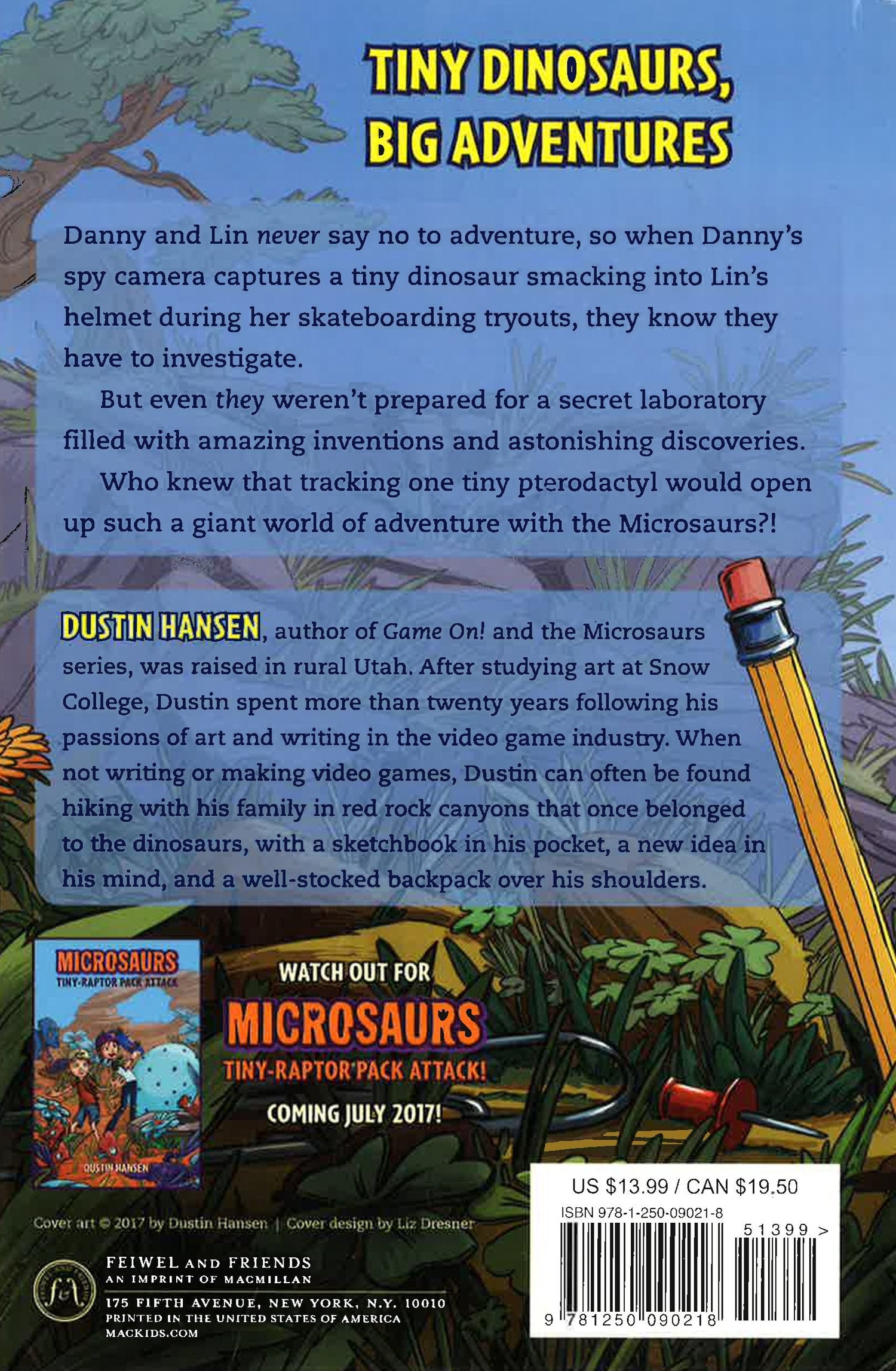 Danny and Lin never say no to adventure, so when Danny's spy camera captures a tiny dinosaur crashing into Lin's helmet during her skateboarding tryouts they know they have to investigate. But even they weren't prepared for a secret laboratory filled with amazing inventions (including the Shrink-a-Fier and the Expand-o-matic 2) and astonishing discoveries (Triceratops are NOT fond of the color red!). Who knew that tracking one tiny pterodactyl would open up such a giant world of adventure with the Microsaurs!?! Honey, I Shrunk the Kids meets Jurassic Park in this new action-packed illustrated chapter book series from author and illustrator Dustin Hansen. *This book may have a reminder mark