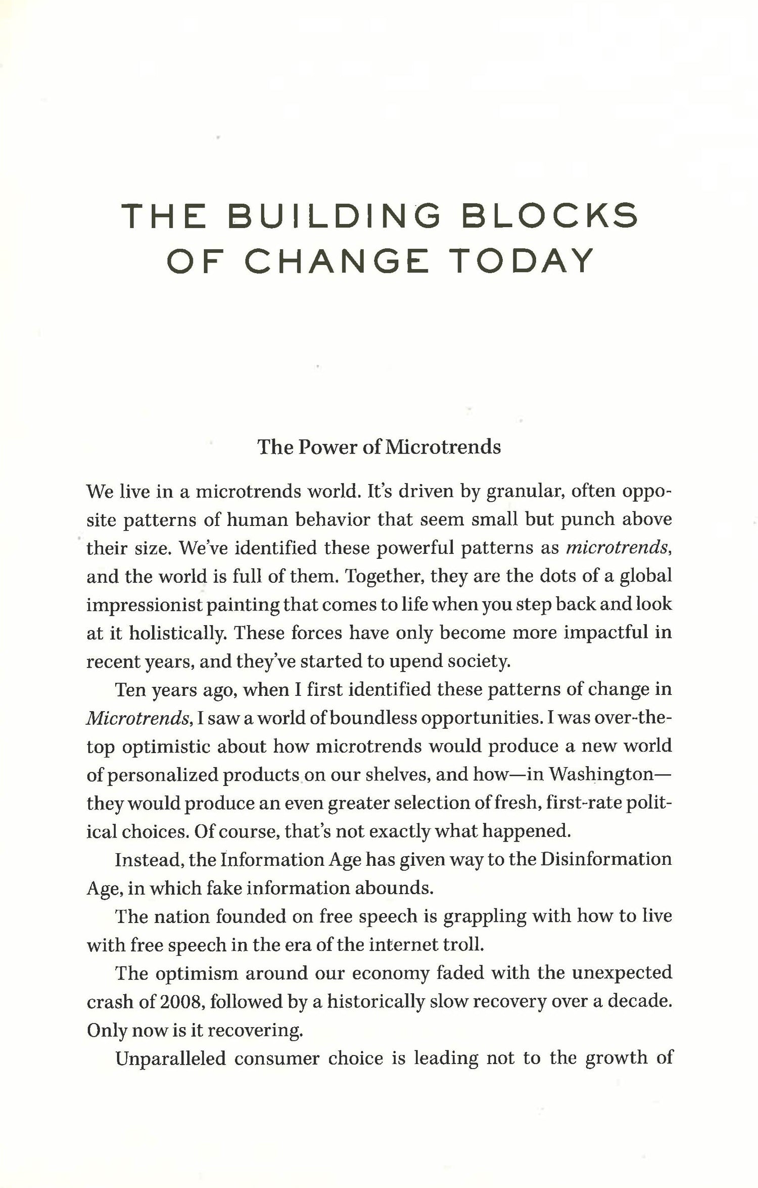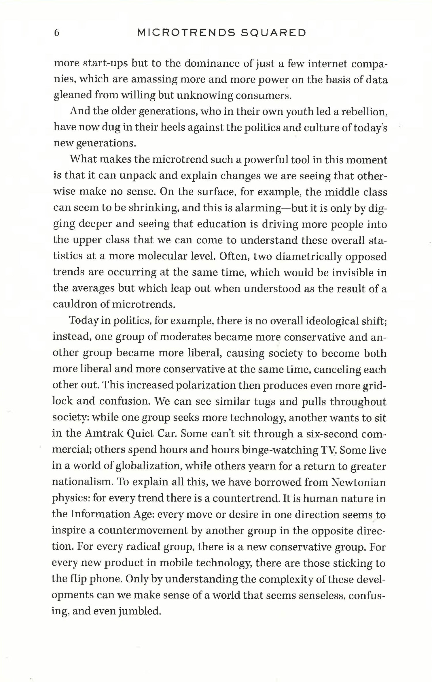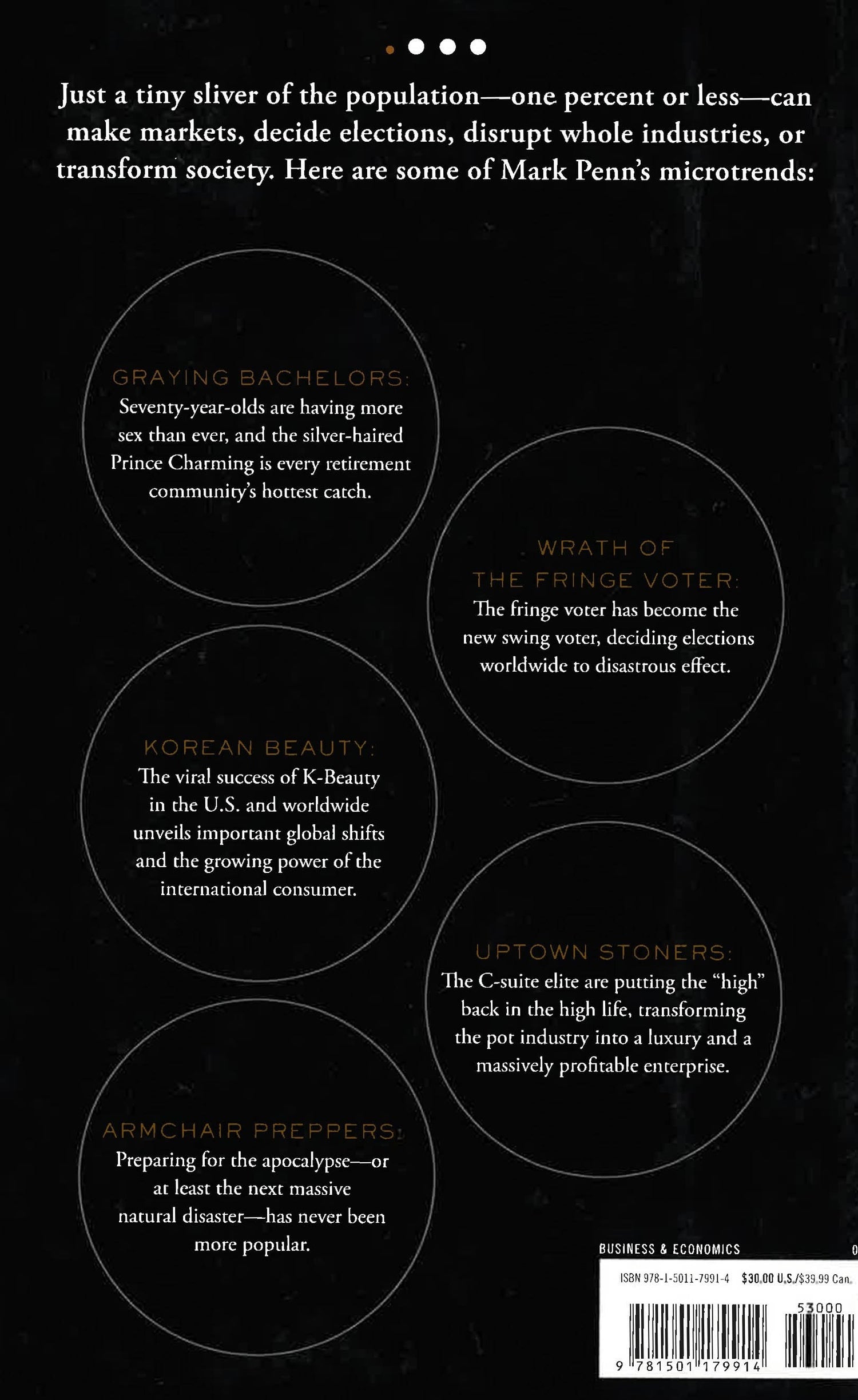 Ten years after his bestseller Microtrends, Mark Penn identifies the next wave of trends reshaping the future of business, politics, and culture.Mark Penn has boldly argued that the future is not shaped by society’s broad forces but by quiet changes within narrow slices of the population. Ten years ago, he showed how the behavior of one small group can exert an outsized influence over the whole of America. His bestselling Microtrends highlighted dozens of tiny, counterintuitive trends that have since come to fruition, from the explosion of internet dating to the recent split within the Republican Party.Today, the world is in perplexing upheaval, and microtrends are more influential than ever. In this environment, Penn offers a necessary perspective.Microtrends Squared makes sense of what is happening in the world today. Through fifty new microtrends, Penn illuminates the shifts that are coming in the next decade. He pinpoints the unseen hand behind new power relationships that have emerged - as fringe voters and reactionary politics have found their revival, as online influencers overshadow traditional media, and as the gig economy continues to invade new swathes of industry. He speaks to the next wave of developments coming in technology, social movements, and even dating.Offering a clear vision of the future of business, politics, and culture, Microtrends Squared is a must-read for innovators and entrepreneurs, political and business leaders, and for every curious reader looking to understand the wave of the future when it is just a ripple.