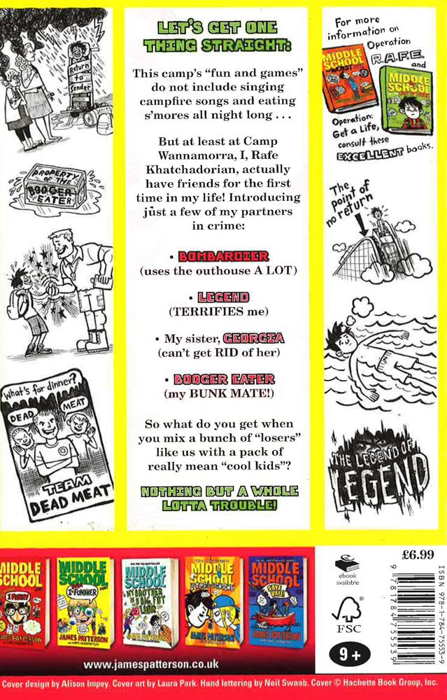 Rafe Khatchadorian, the hero of the bestselling Middle School series, is ready for a fun summer at camp?until he finds out it?s a summer school camp! Luckily, Rafe easily makes friends with his troublemaking cabin mates and bunkmate, a boy nicknamed Booger-Eater, who puts up with endless teasing from the other kids. Rafe soon realizes there?s more to a person than a nickname, though. This third book in the massively popular Middle School series is an unforgettable summer of hijinks, new friends, and surprises, all told with the hilarity and honesty readers have come to expect from blockbuster author James Patterson.