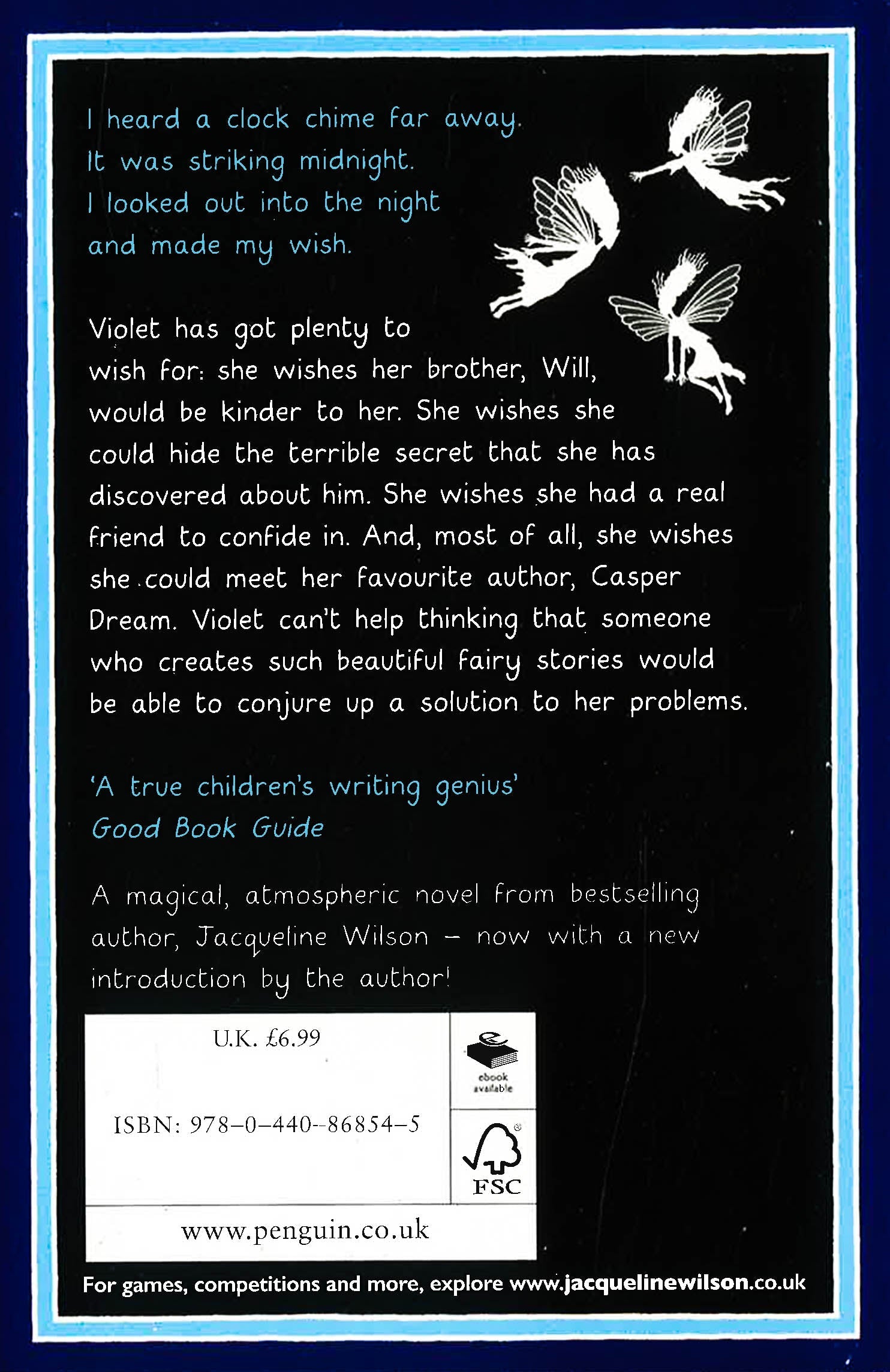 Violet has always been in the shadow of her mesmerising, controlling brother Will, and when a shocking secret about Will's past is revealed, things get even worse. Violet retreats further into her own fantasy world, built around the fairy characters created by her favourite author, Casper Dream. The arrival of a new girl at school, Jasmine, seems like it might change Violet's life for the better. But is Jasmine a true friend? And will Violet ever manage to break free of Will's spell?