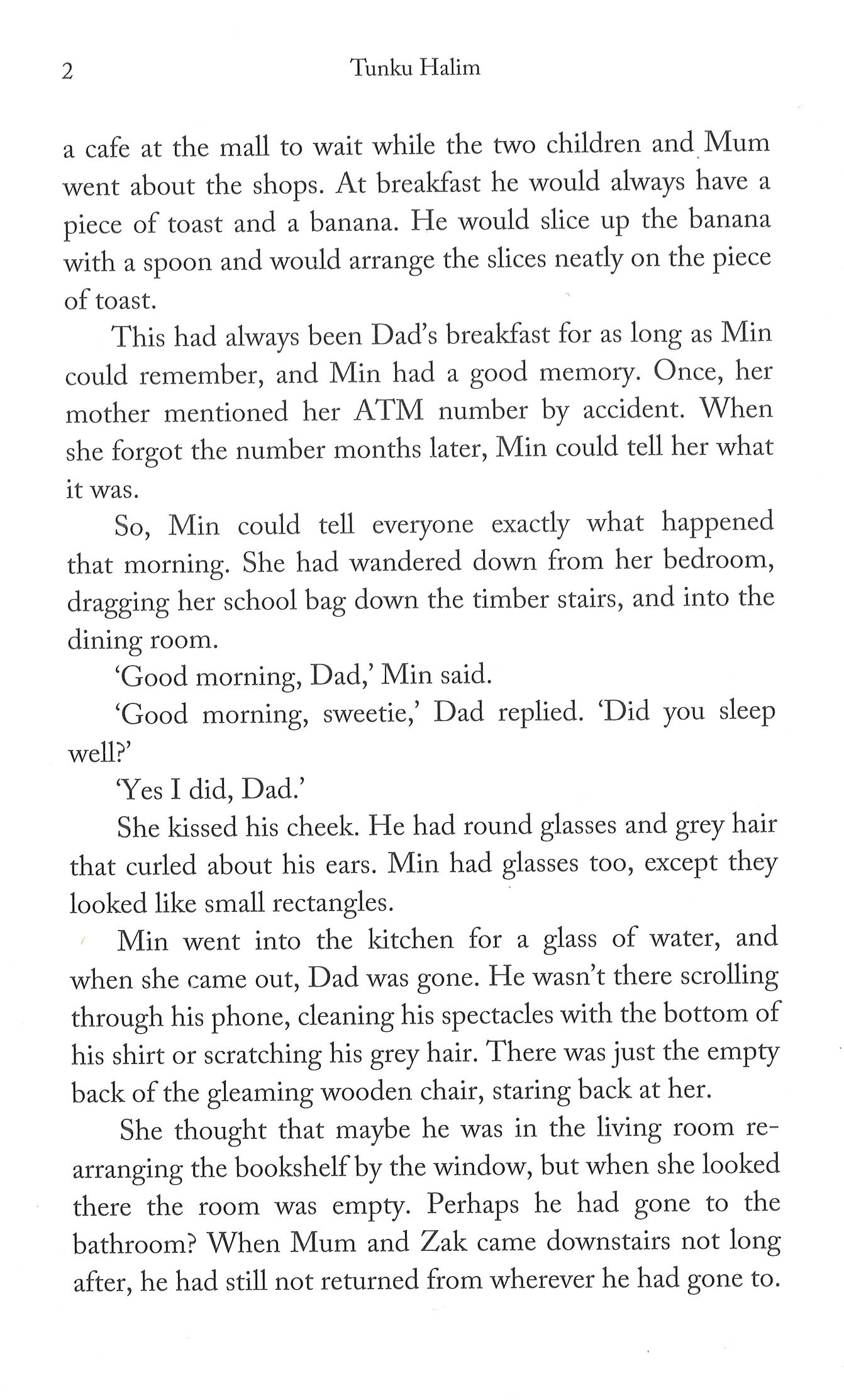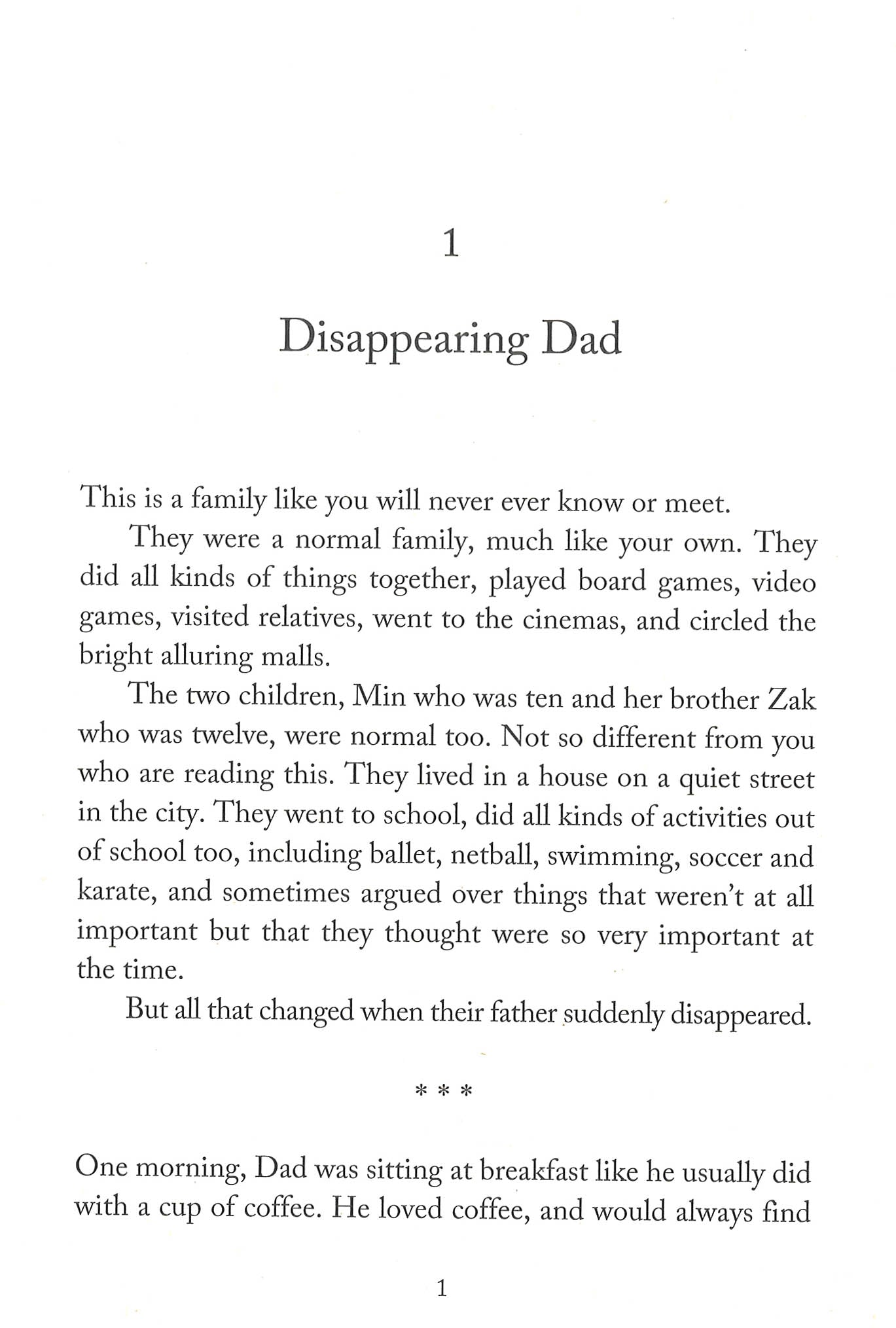 In The Midnight Children: A Vanishing, Zak and Min’s father mysteriously disappears at breakfast and curious things then begin to happen to them. Min encounters two small creatures with spider-like legs, a doll that runs, talks and steals and Shaz, the shaman, who gives her a box with a finger bone inside. Zak is chased by a strange man on all fours in the shopping mall, flees from snakes that interrupt his homework and is visited by a ghostly old lady in his bedroom who happens to love matcha ice cream. Trying to find their father, they are transported to an eerie world called the Moonlight Lands where oily creatures want to kidnap and eat them. The novel concludes with Zak vanishing one night during dinner.