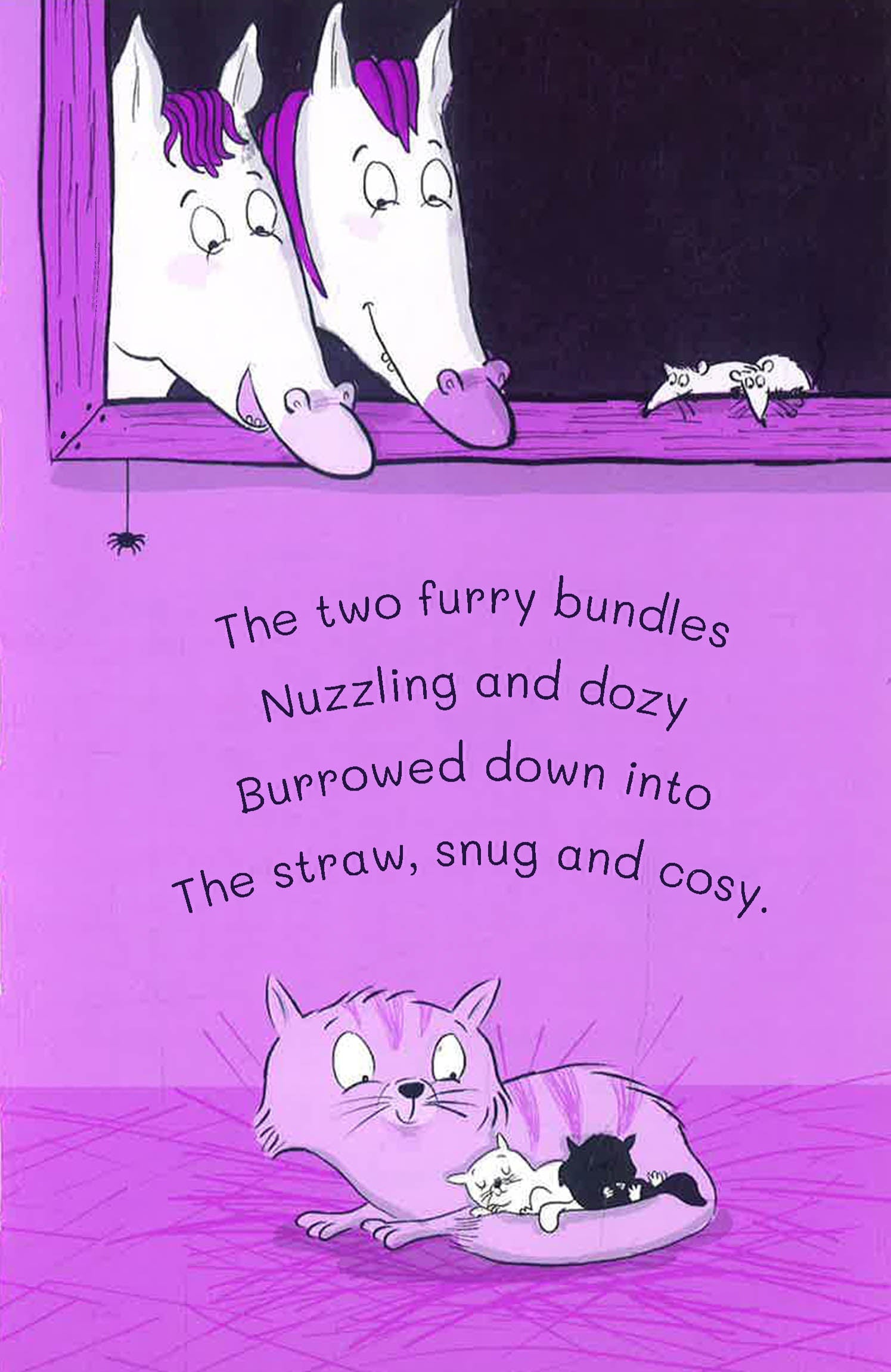 In the middle of winter, three kittens are born in a barn. Two are ordinary, but the third, jet black and born on the stroke of midnight, is brimming with magic from whiskers to tail – even sparking life into a dusty old broomstick! While her siblings pounce at rats, Midnight perfects her flying skills on the broom, not noticing how her mother disapproves of her magical ways…