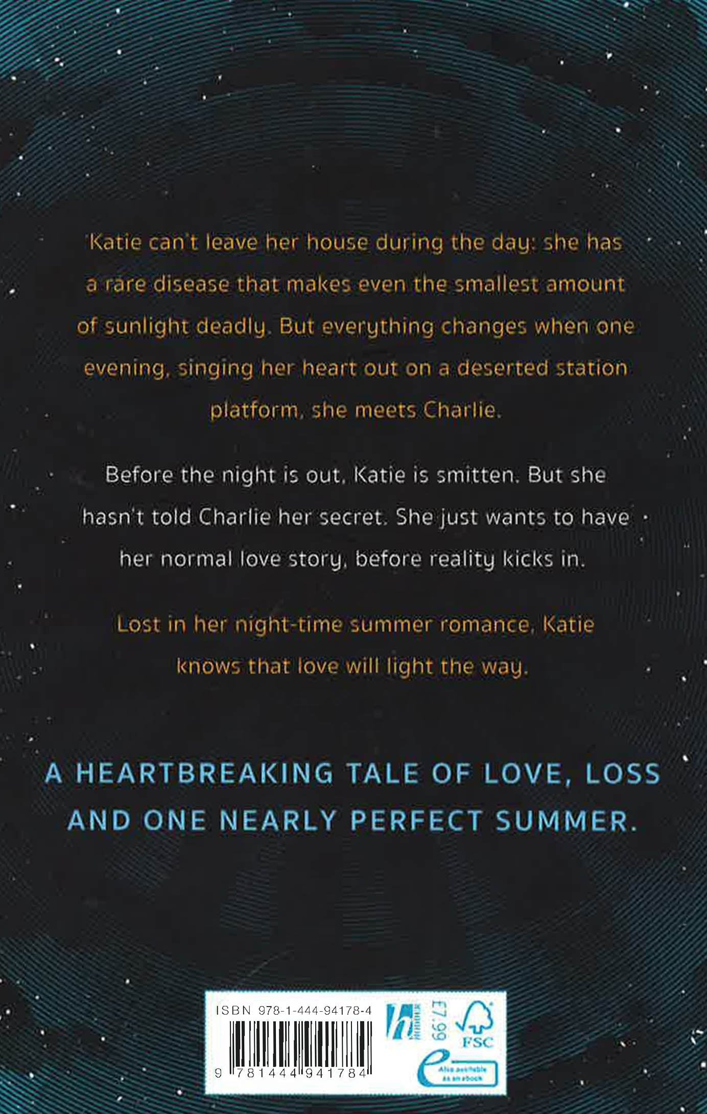 Discover a summer love story like no other: now a major motion picture starring Bella Thorne and Patrick Schwarzenegger, and perfect for fans of The Fault in our Stars and Everything, Everything. Discover a summer love story like no other: now a major motion picture starring Bella Thorne and Patrick Schwarzenegger, and perfect for fans of The Fault in our Stars and Everything, Everything.Katie can't leave her house during the day: she has a rare disease that makes even the smallest amount of sunlight deadly. But everything changes when one evening, singing her heart out on a deserted station platform, she meets Charlie.Before the night is out, Katie is smitten. But she hasn't told Charlie her secret. She just wants to have her normal love story, before reality kicks in. Lost in her night-time summer romance, Katie knows that love will light the way.A heartbreaking tale of love, loss and one nearly perfect summer.