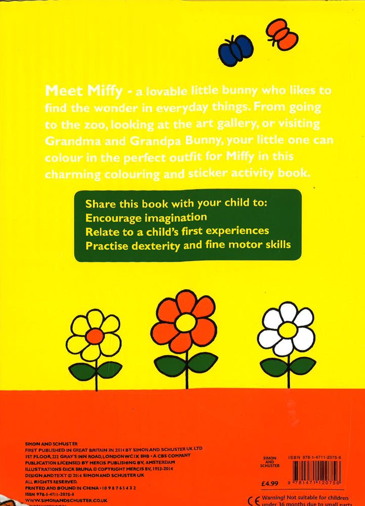 Meet Miffy - a lovable little bunny who likes to find the wonder in everyday things. From going to the zoo, looking at the art gallery, or visiting Grandma and Grandpa Bunny, your little one can colour in the perfect outfit for Miffy in this charming colouring and stylish sticker activity book. Share this sticker book with your child to encourage imagination, relate to a child's first experiences, and practise dexterity and fine motor skills. With over 50 delightful stickers for your little one at home.