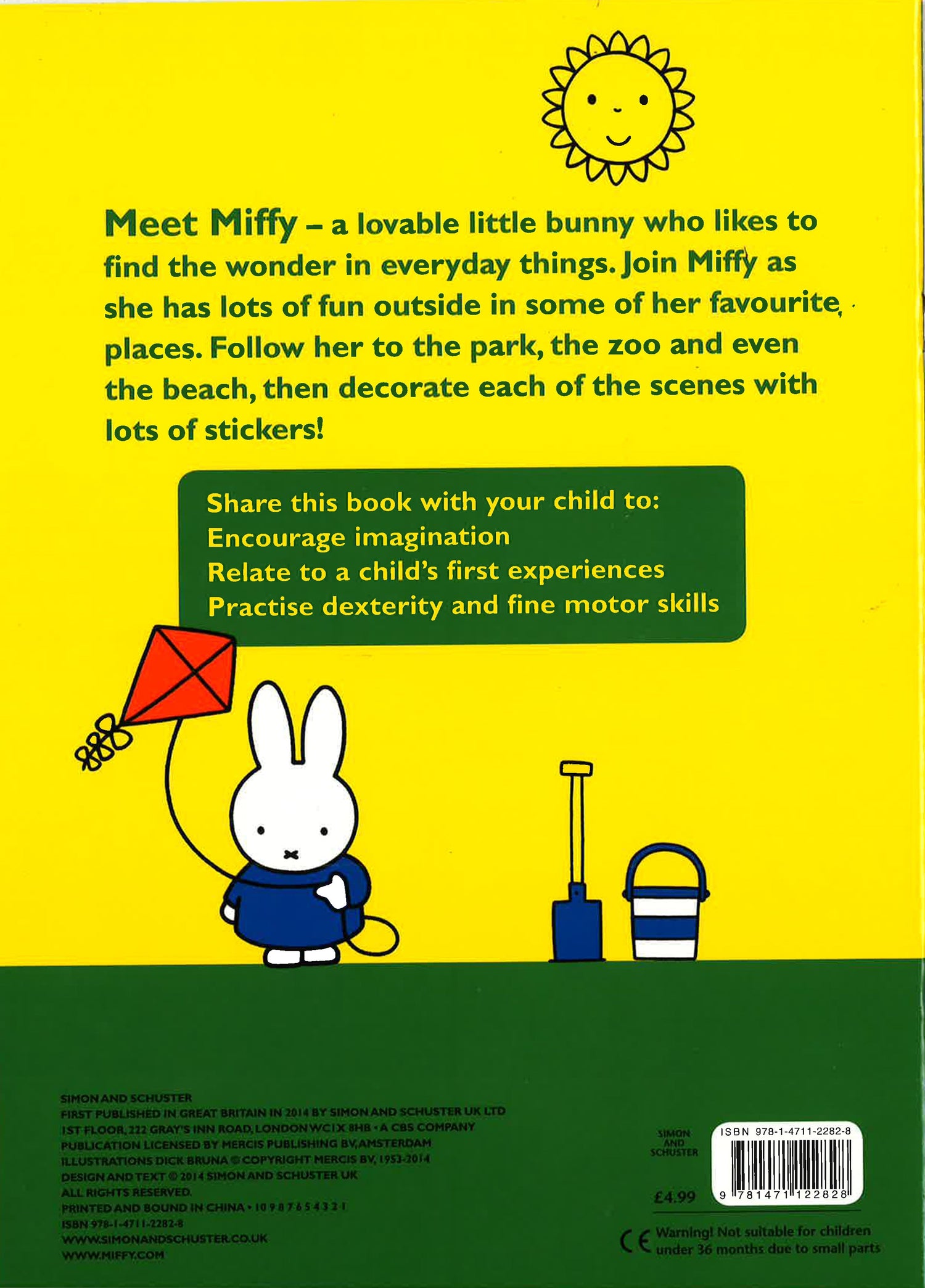 Meet Miffy - a lovable little bunny who likes to find the wonder in everyday things. With over 50 lovely stickers you can explore the outdoors with Miffy and learn all about her favourite places, then create beautiful scenes of Miffy and her friends. Share this sticker book with your child to encourage imagination, relate to a child's first experiences, and practise dexterity and fine motor skills.Perfect for any Miffy fan!*This book may have minor shelfwear*