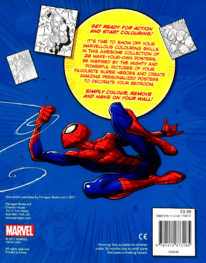 Calling all Super Heroes, it's time to get ready for action and get colouring! Mighty Marvel Posters includes an awesome collection of 28 make-your-own posters perfect for your marvellous colouring skills. Be inspired by the mighty and powerful pictures of your favourite super heroes and create personalized posters to decorate your bedroom! Simply colour, remove and hang on your wall!