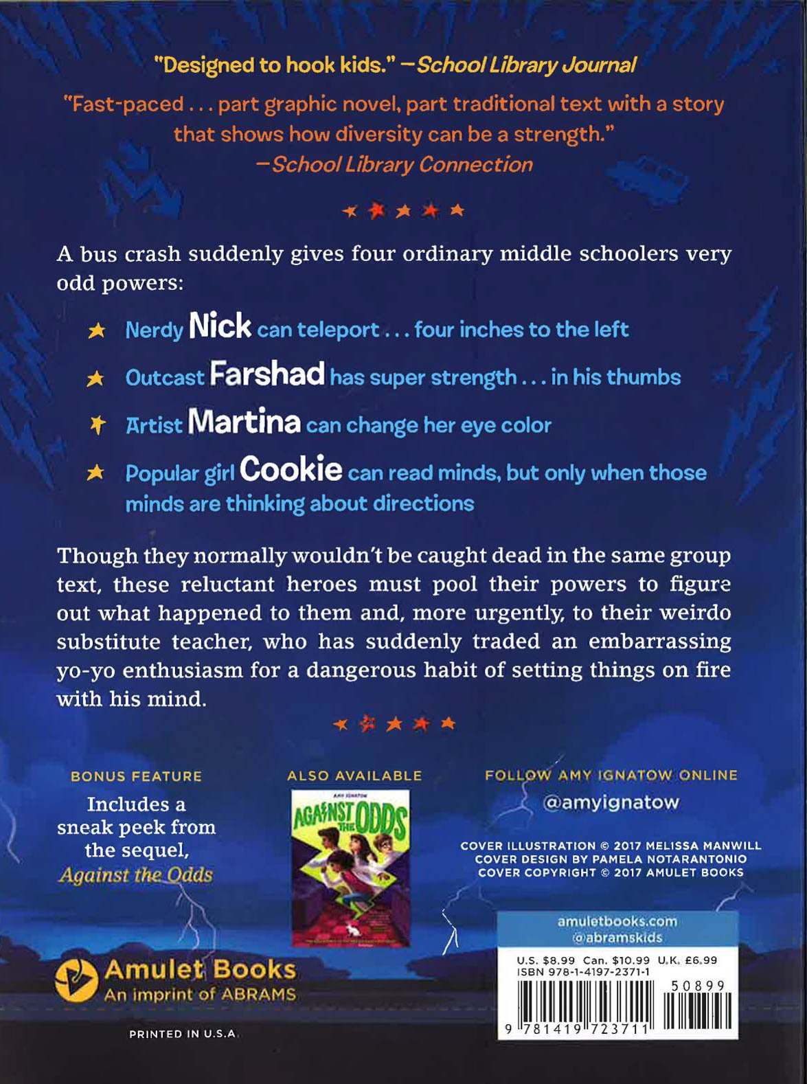 What do you get when you mix a sci-fi nerd, a cartoonist, a social outcast, and the most popular girl in school with a mysterious bus crash? Some very specific-and mighty odd-superpowers. Martina can change her eye color; Nick can teleport four inches to the left; Farshad can develop super strength, but only in his thumbs; and Cookie can read minds, when those minds are thinking about directions.