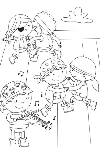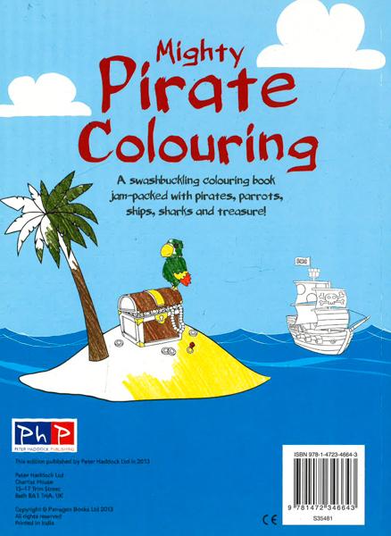 A swash-buckling colouring book jam packed with pirate, parrots, ships, sharks and treasure!
