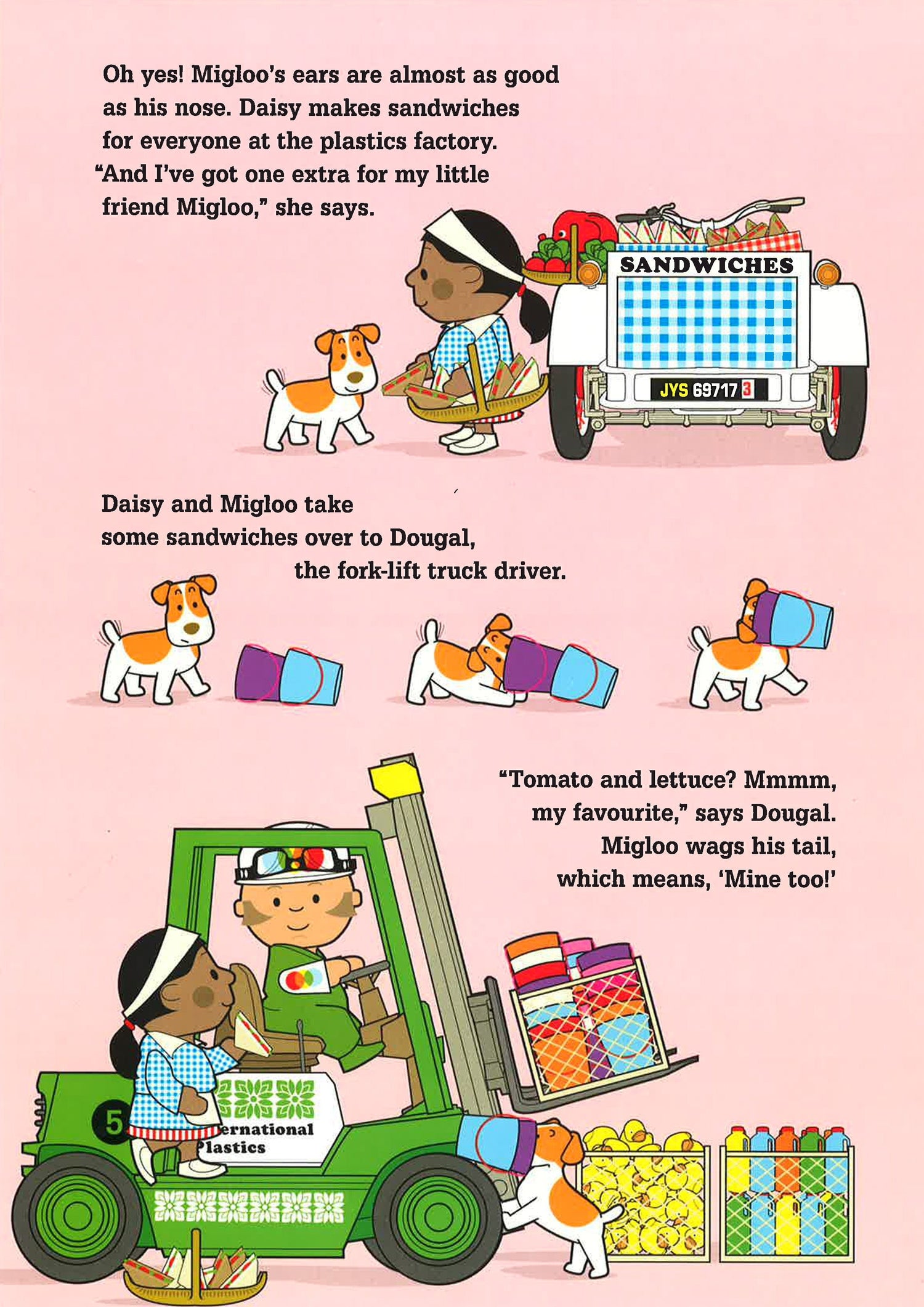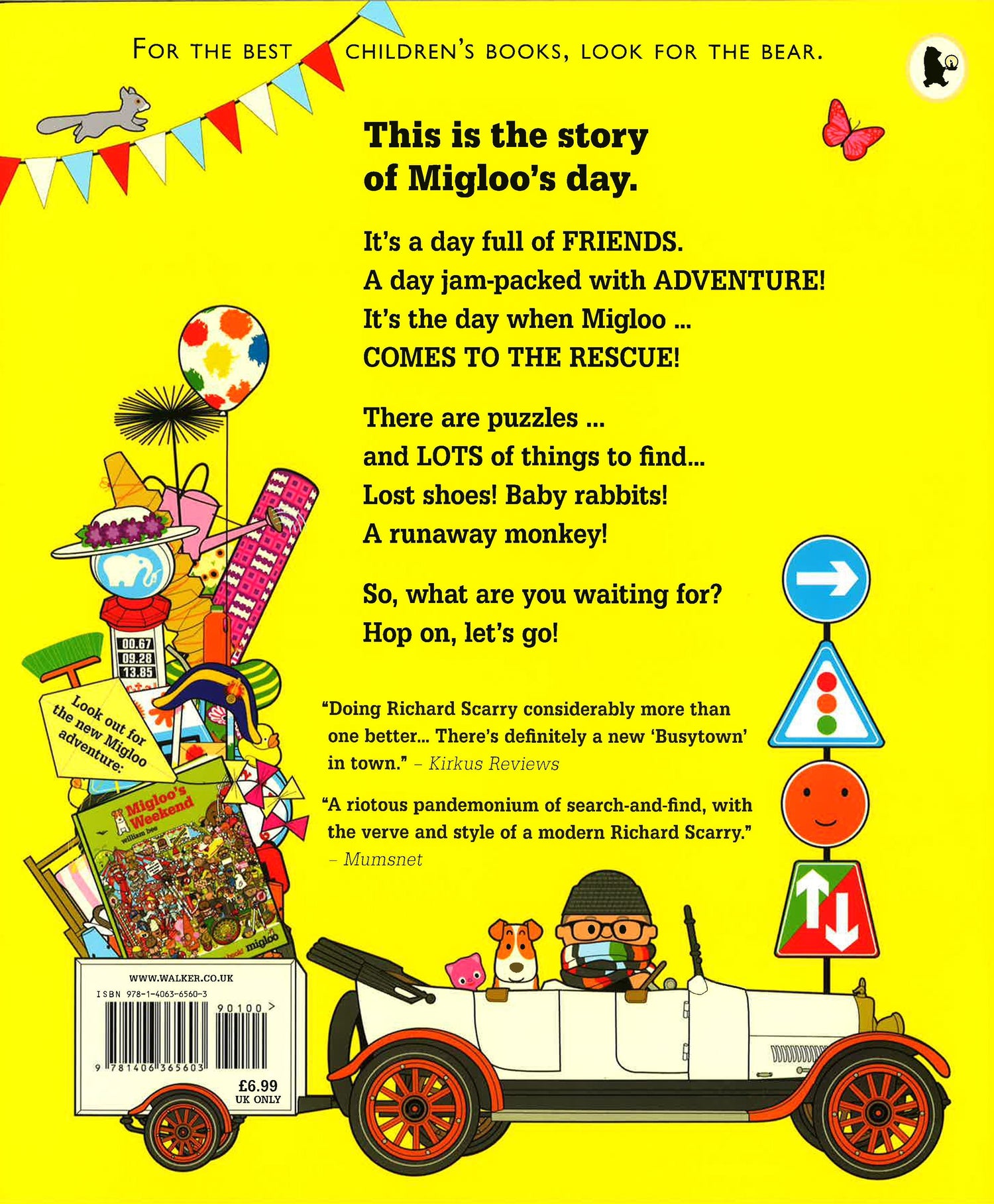 Join Migloo, a fun-loving dog, on his day out and about in the busy, silly and hilarious world of Sunnytown! From the iconic creator of Whatever, William Bee, comes a brand new series and the ultimate search-and-find story book experience. Meet Migloo - everyone's favourite dog - and follow him on his adventures through Sunnytown as he follows his nose for delicious treats, meets all his friends along the way and even saves the day! Jam-packed town scenes illustrate the adventures of Sunnytown's residents through comical, visual narratives (follow Milo the Monkey who has run away with Zebedee's hat or spot the little rubber ducks that have escaped the plastics factory) and spot all of the town's vehicles on the eye-watering gatefold - fire engines, tractors, ice-cream vans, racing cars and fork-lift tricks! With a chock-a-block play page at the end of the book, too, there are so many hours of interactive fun to be had!