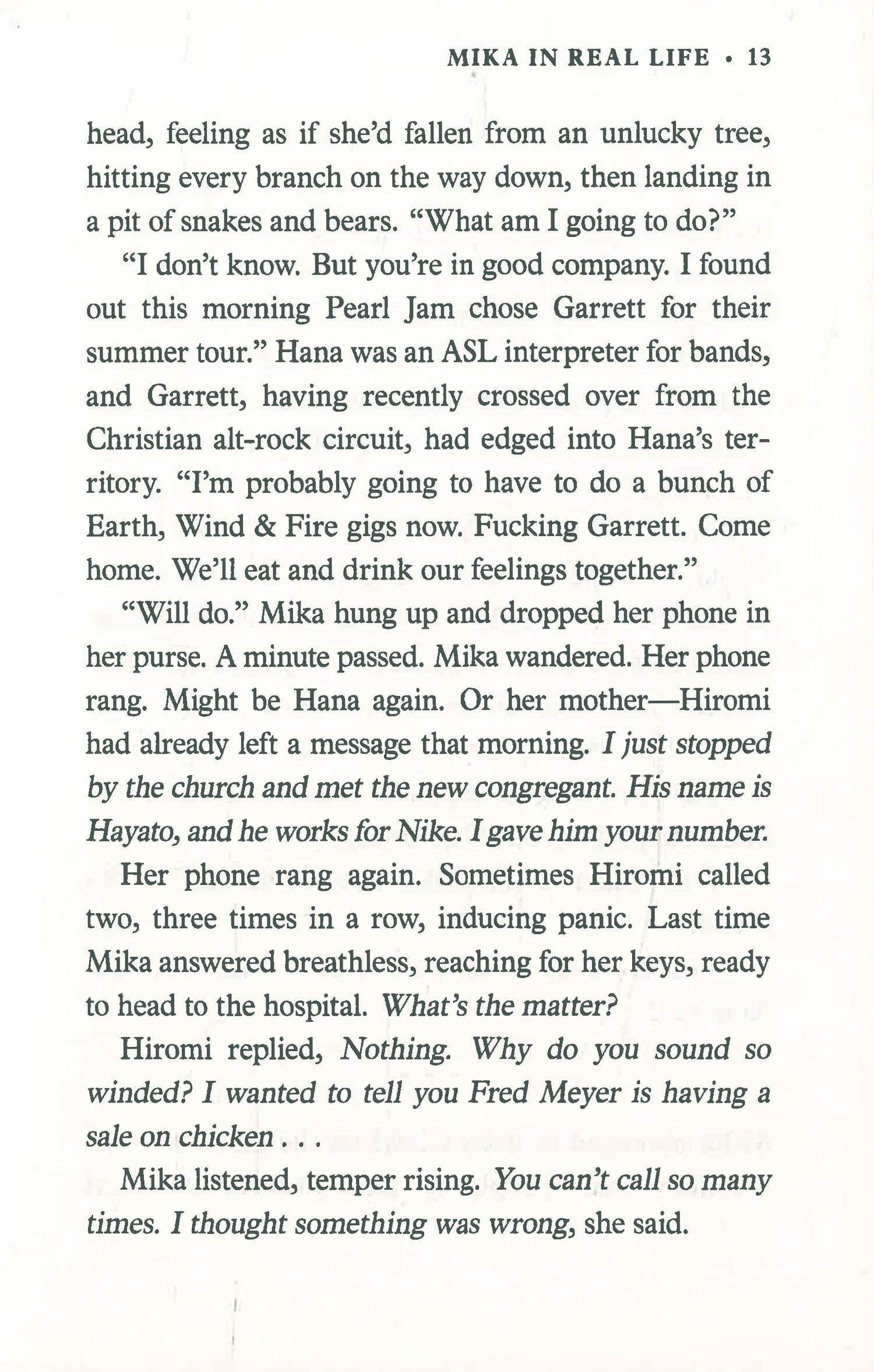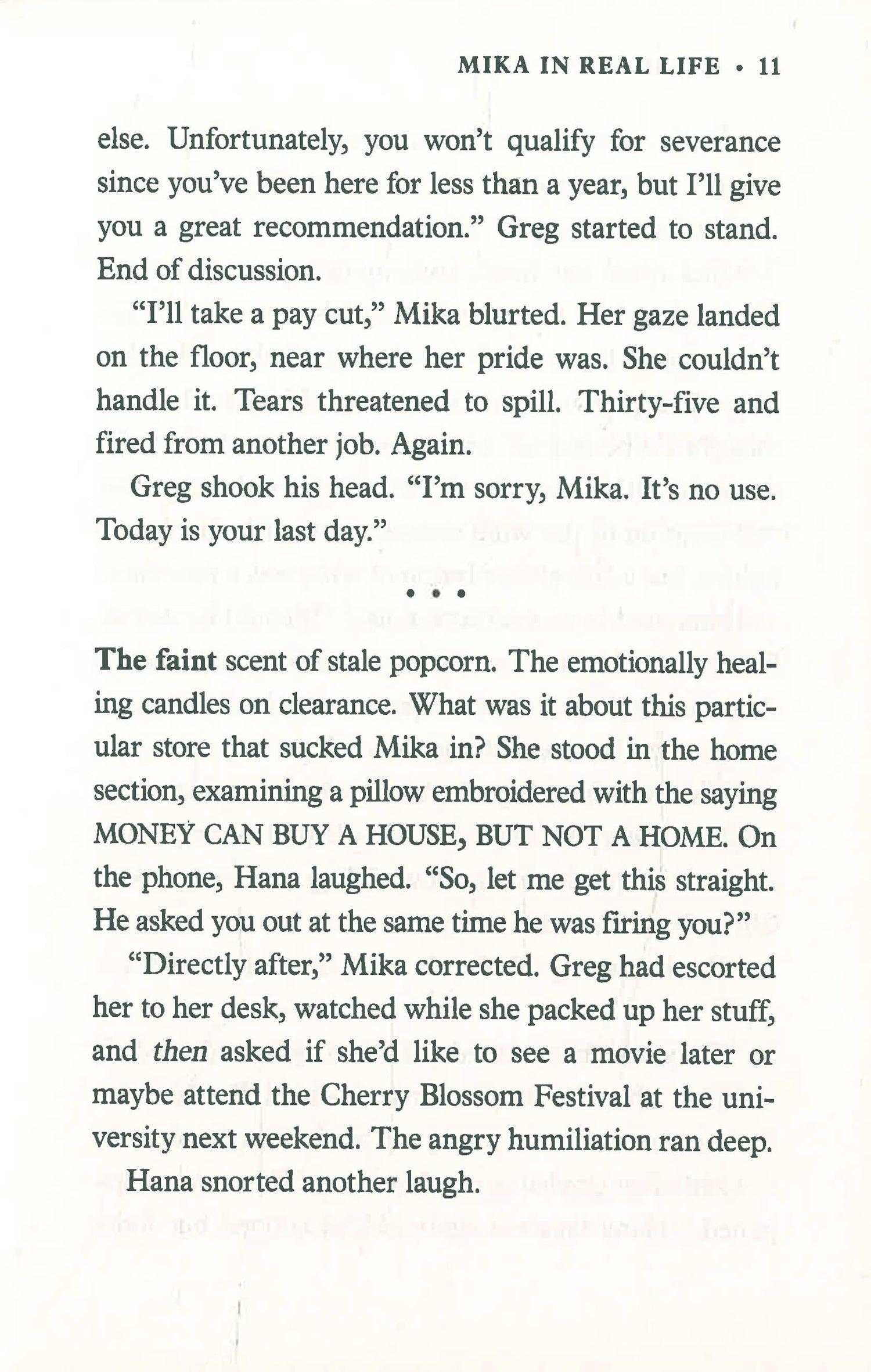 At thirty-five, Mika Suzuki’s life is a mess. Her last relationship ended in flames. Her roommate-slash-best friend might be a hoarder. She’s a perpetual disappointment to her traditional Japanese parents. And, most recently, she’s been fired from her latest dead-end job.