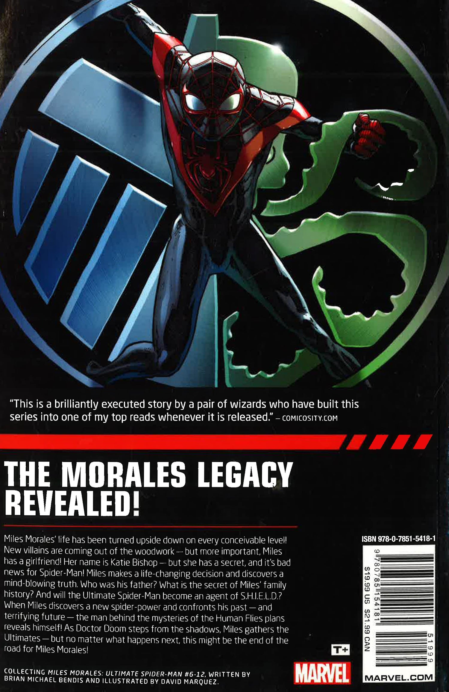 Miles Morales' life has been turned upside down on every conceivable level! New villains are coming out of the woodwork...but more importantly, Miles has a girlfriend! Her name is Katie Bishop - but she has a secret, and it's bad news for Spider-Man! Miles makes a life-changing decision and discovers a mind-blowing truth. Who was his father? What is the secret of Miles' legacy? And will the Ultimate Spider-Man become an agent of S.H.I.E.L.D.? As Miles confronts his family's past and his terrifying future, and discovers a new spider-power, the man behind the mysteries of the Human Flies plans reveals himself...and it's not good news for Spider-Man!