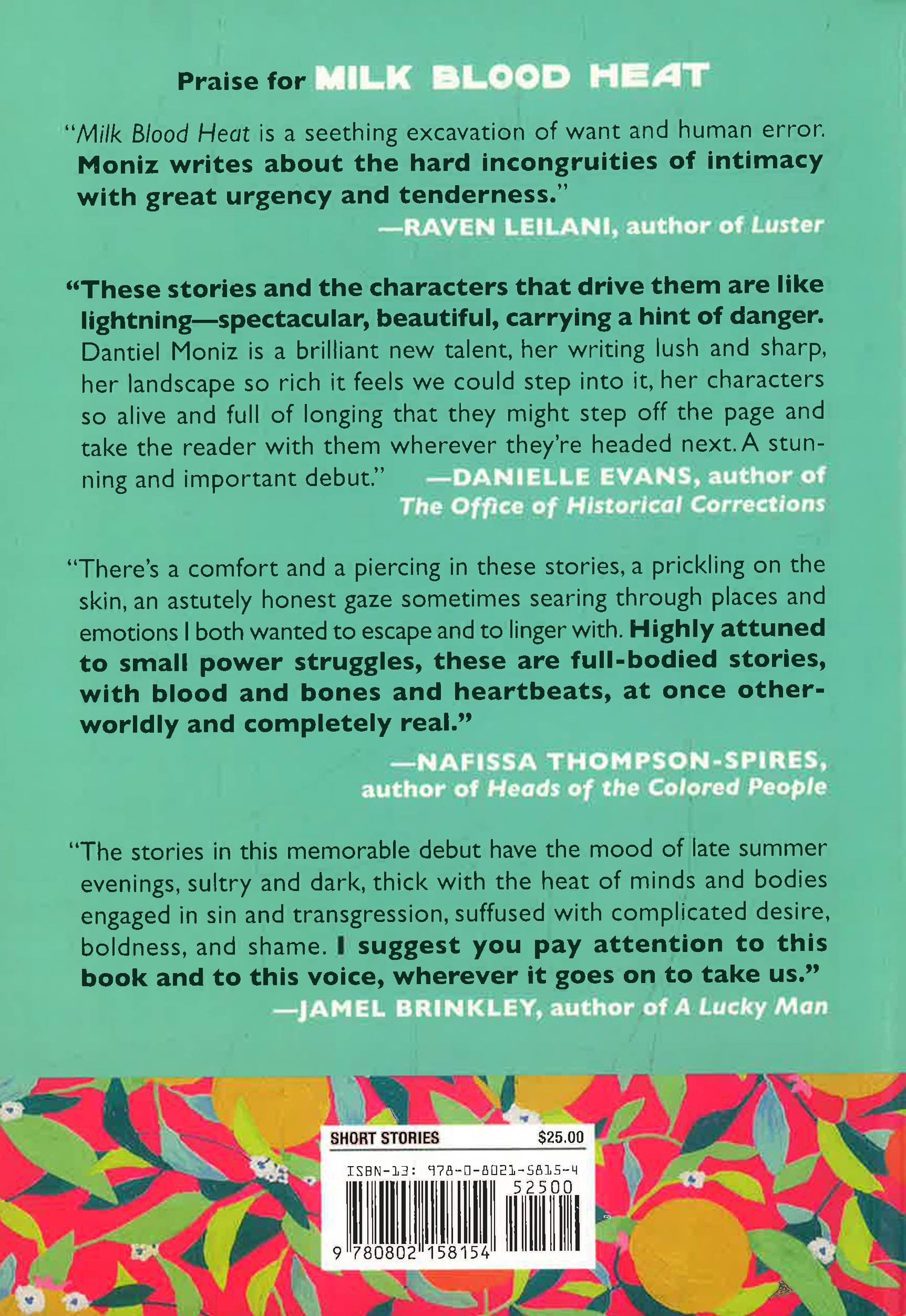 A livewire debut from Dantiel W. Moniz, one of the most exciting discoveries in today's literary landscape, Milk Blood Heat depicts the sultry lives of Floridians in intergenerational tales that contemplate human connection, race, womanhood, inheritance, and the elemental darkness in us all. Set among the cities and suburbs of Florida, each story delves into the ordinary worlds of young girls, women, and men who find themselves confronted by extraordinary moments of violent personal reckoning. These intimate portraits of people and relationships scour and soothe and blast a light on the nature of family, faith, forgiveness, consumption, and what we may, or may not, owe one another.